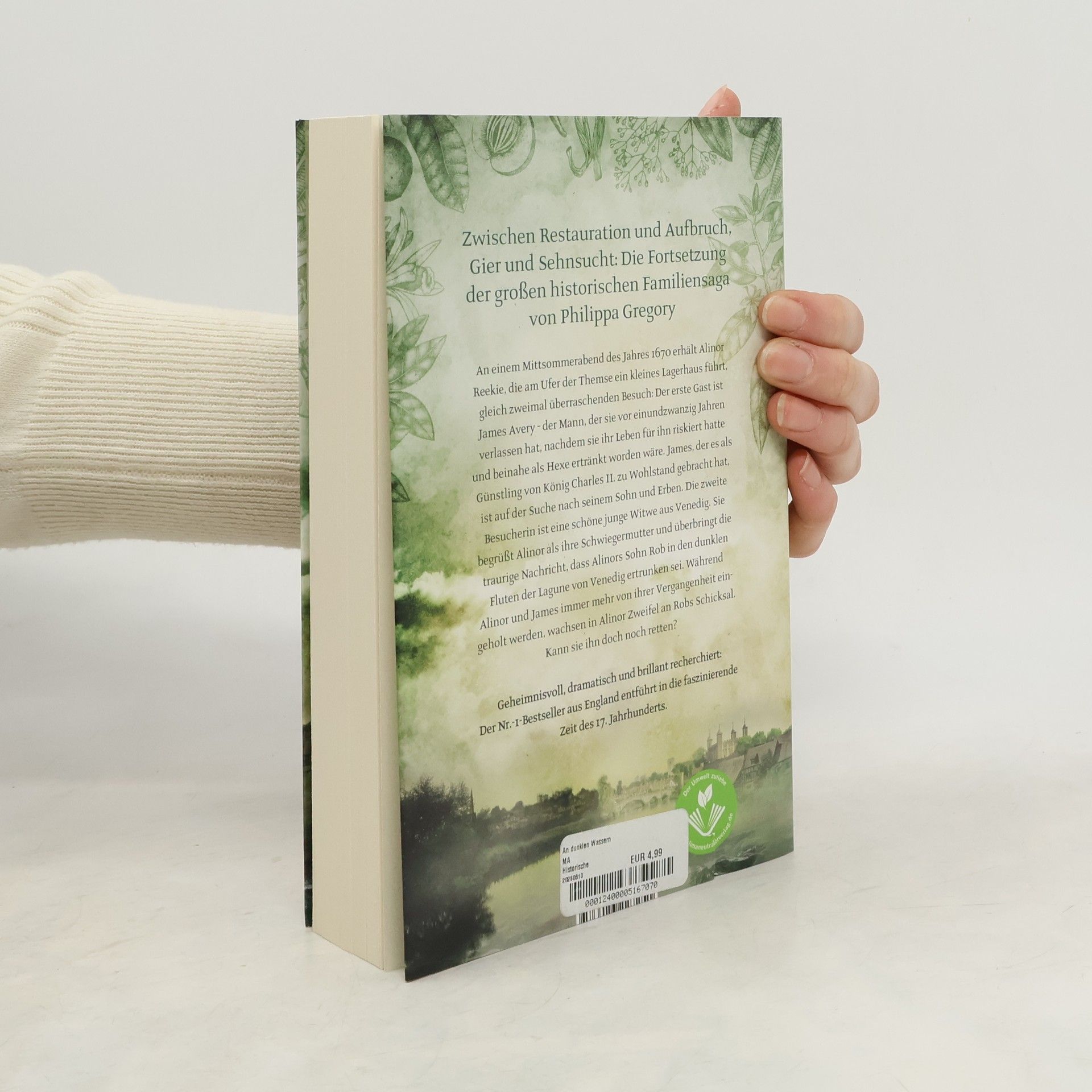 Die »Hexe« Alinor ist zurück: »An dunklen Wassern« ist der 2. Teil der historischen Familiensaga aus dem 17. Jahrhundert von Bestseller-Autorin Philippa Gregory. An einem Mittsommerabend des Jahres 1670 erhält Alinor gleich zweimal überraschenden Besuch: Der erste, der sie in ihrem kleinen Lagerhaus am Südufer der Themse aufstöbert, ist James Avery – der Mann, der sie vor 21 Jahren verlassen hat, nachdem sie ihr Leben für ihn riskiert hatte und beinahe als Hexe ertränkt worden wäre. James, der es als Günstling von König Charles II. zu Wohlstand gebracht hat, ist auf der Suche nach seinem Sohn und Erben. Die zweite Besucherin ist eine schöne junge Witwe aus Venedig. Sie begrüßt Alinor als ihre Schwiegermutter und überbringt die traurige Nachricht, dass Alinors Sohn Rob in den dunklen Fluten der Lagune von Venedig ertrunken sei. Während Alinor und James immer mehr von der Vergangenheit eingeholt werden, wachsen in Alinor Zweifel an Robs Schicksal. Kann sie ihn doch noch retten? Geheimnisvoll, dramatisch und brillant recherchiert, entführt der Nr.-1-Bestseller aus England in die ärmlichen Gassen von London ebenso wie in die goldenen Straßen Venedigs und bis ins ferne, hart umkämpfte Amerika. Der erste Teil der historischen Familiensaga ist unter dem Titel »Gezeitenland« erschienen.