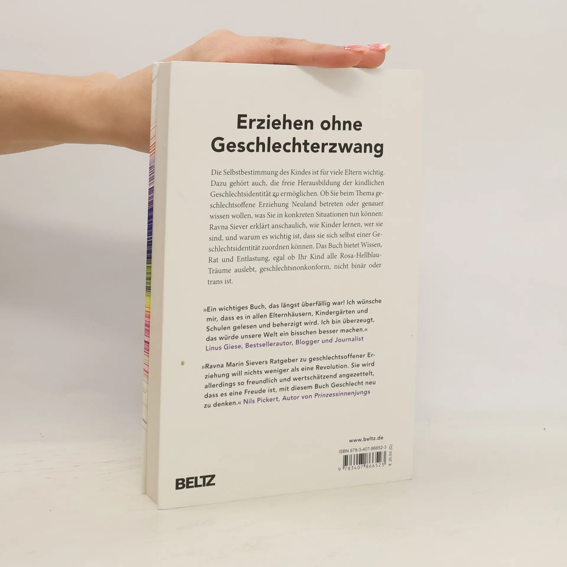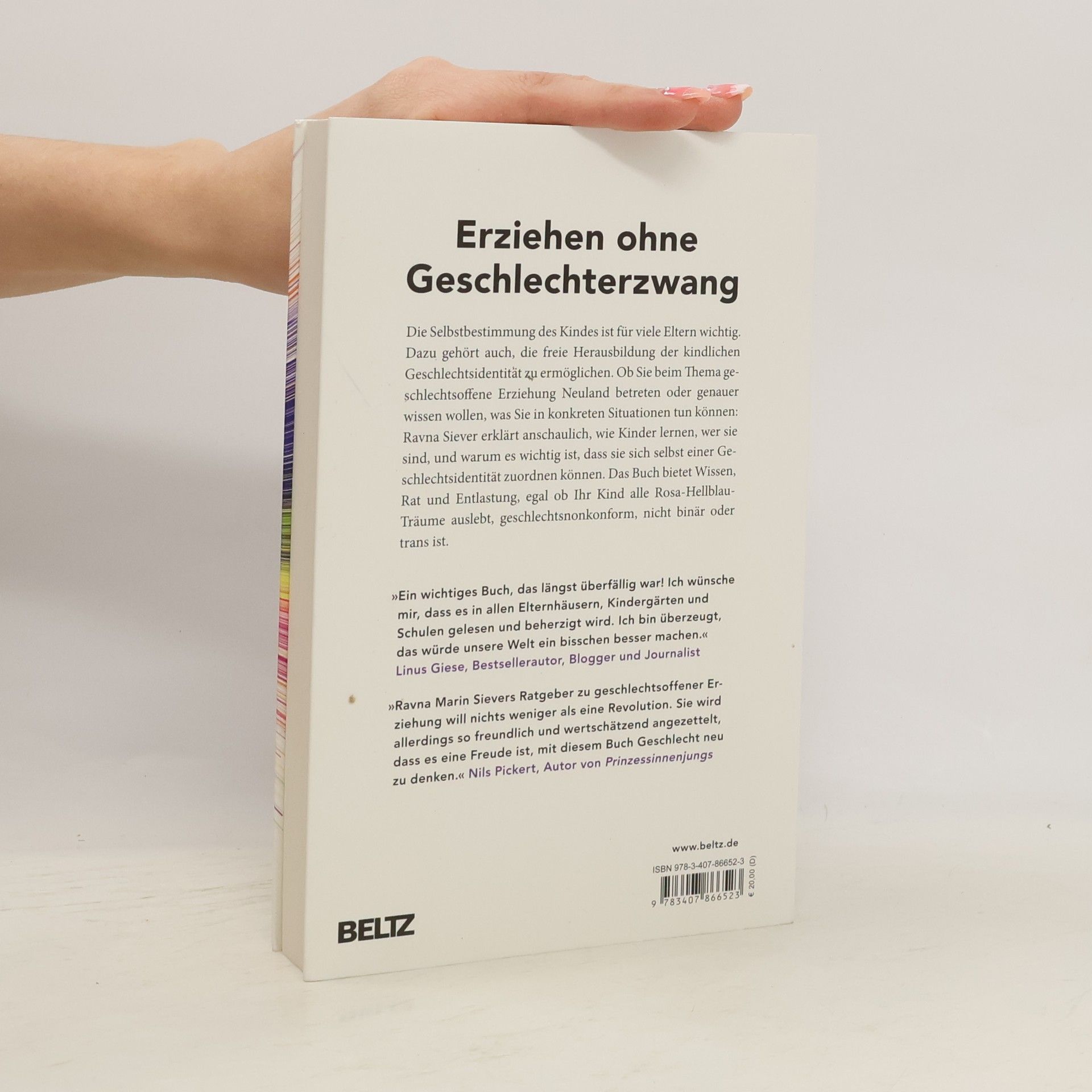 Für Eltern, die bindungs- und bedürfnisorientiert erziehen, ist die Selbstbestimmung des Kindes ein wichtiger Wert. Das bedeutet, auch auf Geschlechterstereotype zu verzichten und die freie Herausbildung der kindlichen (Geschlechts-)Identität zu ermöglichen. Diese findet überwiegend während der ersten 10 Lebensjahre statt. Dass Geschlecht eine soziale Konstruktion und nicht binär, sondern vielfältig ist, beschreibt Ravna Marin Siever anschaulich und einfühlsam anhand der Erkenntnisse der Gender Studies sowie zahlreicher Erfahrungsberichte von Eltern und Situationen im Alltag. Es gibt Kinder, die weder männlich noch weiblich sind, egal welchen Normierungsdruck Mütter, Väter oder die Gesellschaft ausüben. Siever erklärt, wie Kinder lernen, wer sie sind, und warum es wichtig ist, dass sie sich selbst einer Geschlechtsidentität zuordnen können. Das Buch bietet Eltern Entlastung, egal ob ihr Kind alle rosa-hellblau-Klischees auslebt, geschlechtsnonkonform, nicht binär oder trans ist.