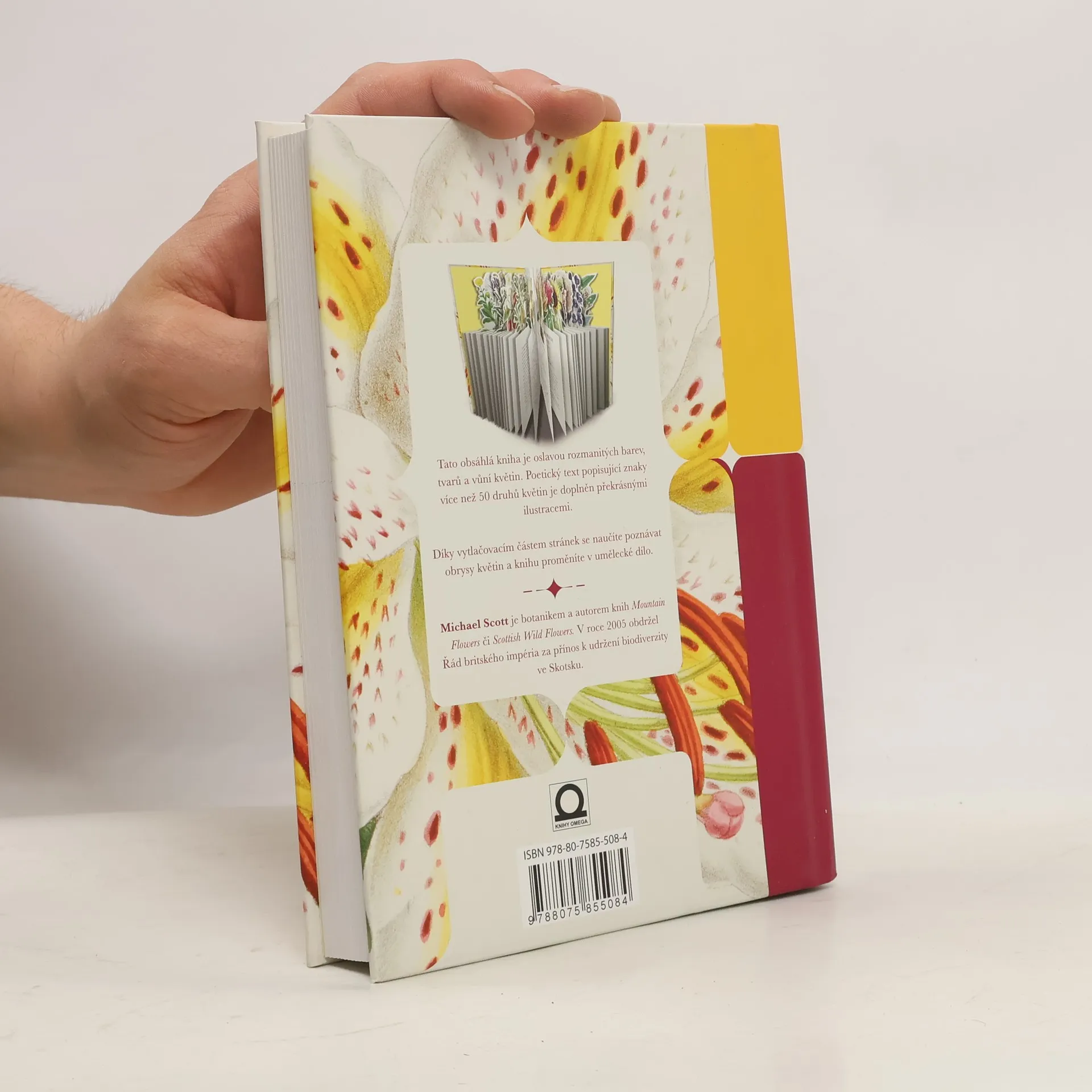 Tato obsáhlá kniha je oslavou rozmanitých barev, tvarů a vůní květin. Poetický text popisující znaky více než 50 druhů květin je doplněn překrásnými ilustracemi. Díky vytlačovacím částem stránek se naučíte poznávat obrysy květin a knihu proměníte v umělecké dílo.