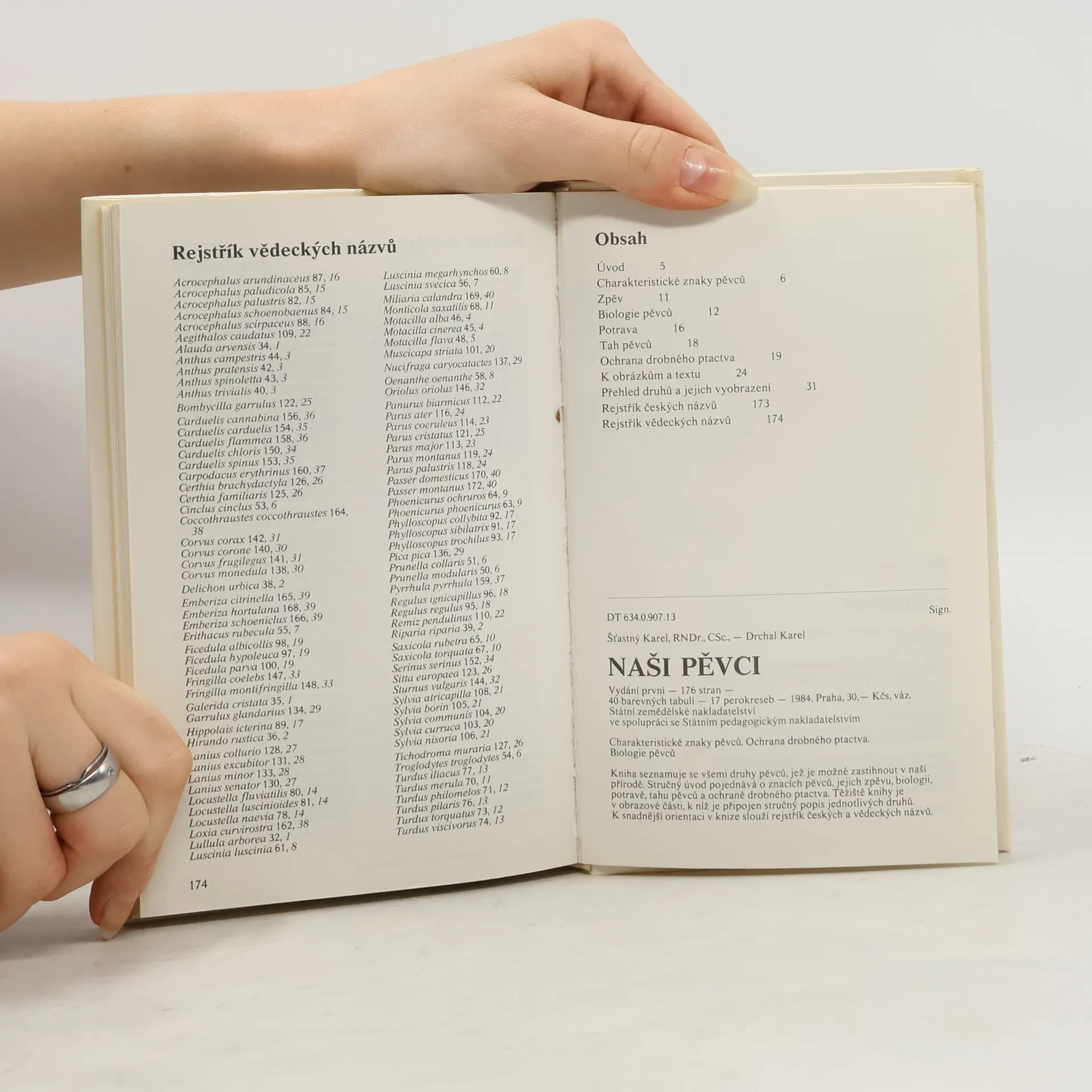 Kniha seznamuje se všemi druhy pěvců, jež je možné zastihnout v naší přírodě. Stručný úvod pojednává o znacích pěvců, jejich zpěvu, biologii, potravě, tahu pěvců a ochraně drobného ptactva. Těžiště knihy je v obrazové části, k níž je připojen stručný popis jednotlivých druhů.K snadnější orientaci v knize slouží rejstřík českých a vědeckých názvů.