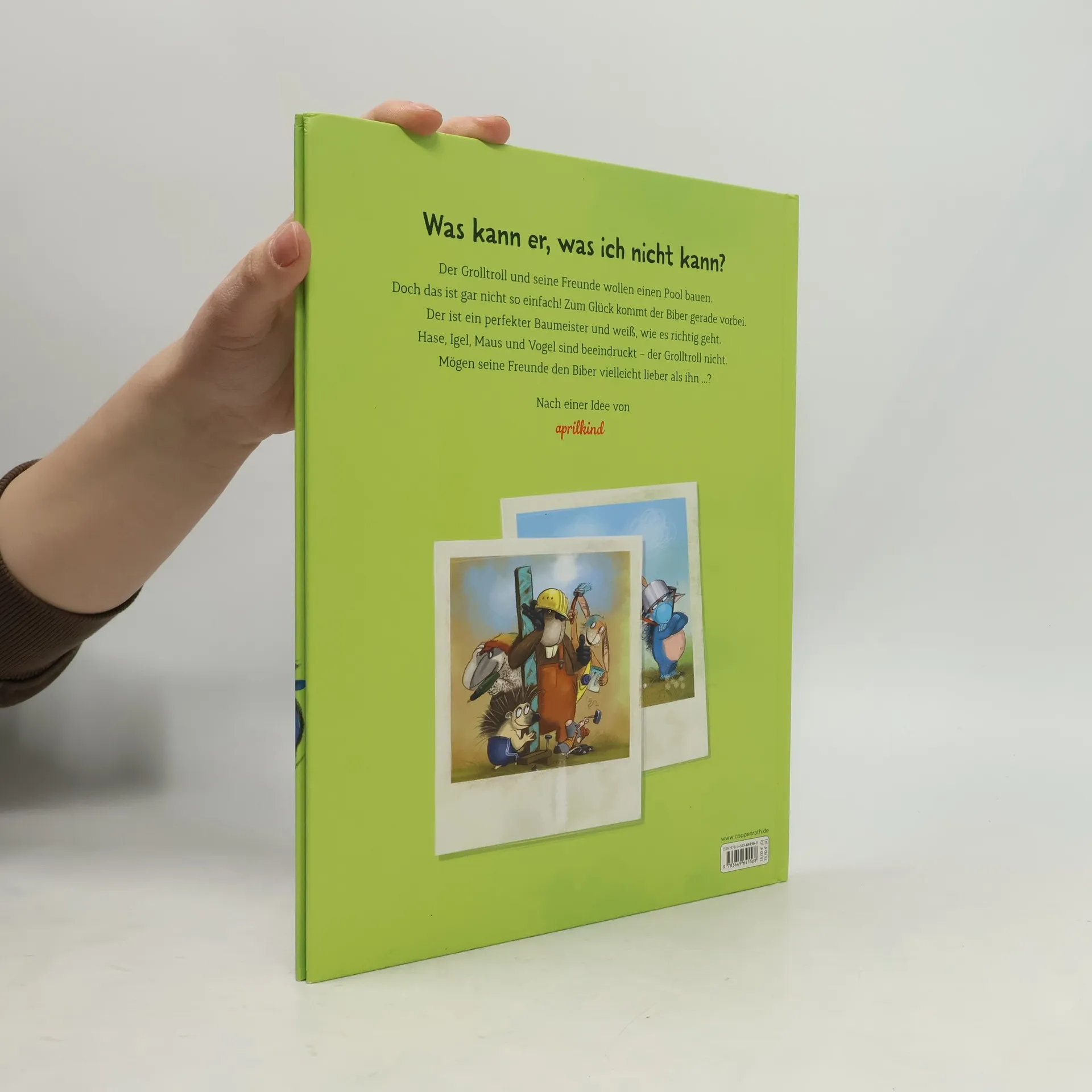 "Grolltroll und seine Freunde wollen einen Pool bauen, doch das ist leichter gesagt, als getan! Zum Glück kommt der Biber gerade vorbei. Der ist ein perfekter Baumeister und muss schließlich wissen, wie es richtig geht. Hase, Igel, Maus und Vogel sind beeindruckt - der Grolltroll nicht. Mögen seine Freunde den Biber etwa lieber als ihn ....?"-- Back cover
