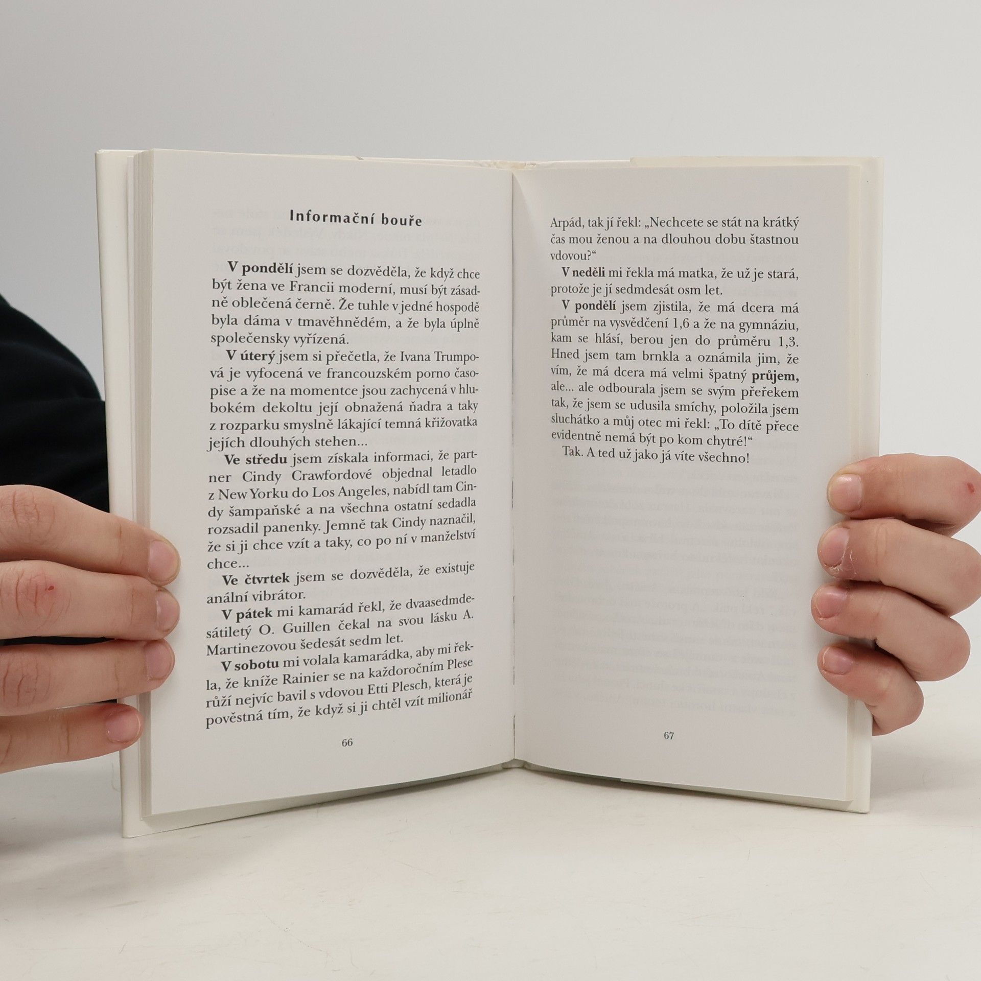 Povídky o pocitech, zkušenostech a omylech ženy v nejlepším věku Již čtvrté vydání úspěšné knihy dvaceti osmi humorných příběhů psaných s ležérním nadhledem, jejichž tématem je láska a milostný život. Vzpomněla jsem si taky na kamarádku Jarku. Její muž chodil každou středu do hospody s kamarády. Jednou tam Jarka šla, uviděla tam hezkou blondýnu, z pohledů manžela vytušila, o čem je řeč, a příští týden mu ve středu dala do piva projímadlo. Manžel do hospody šel, bylo mu špatně a jeho blondýnka ho vzala na ošetření k sobě domů a Jarčin manžel tam zůstal dva roky.