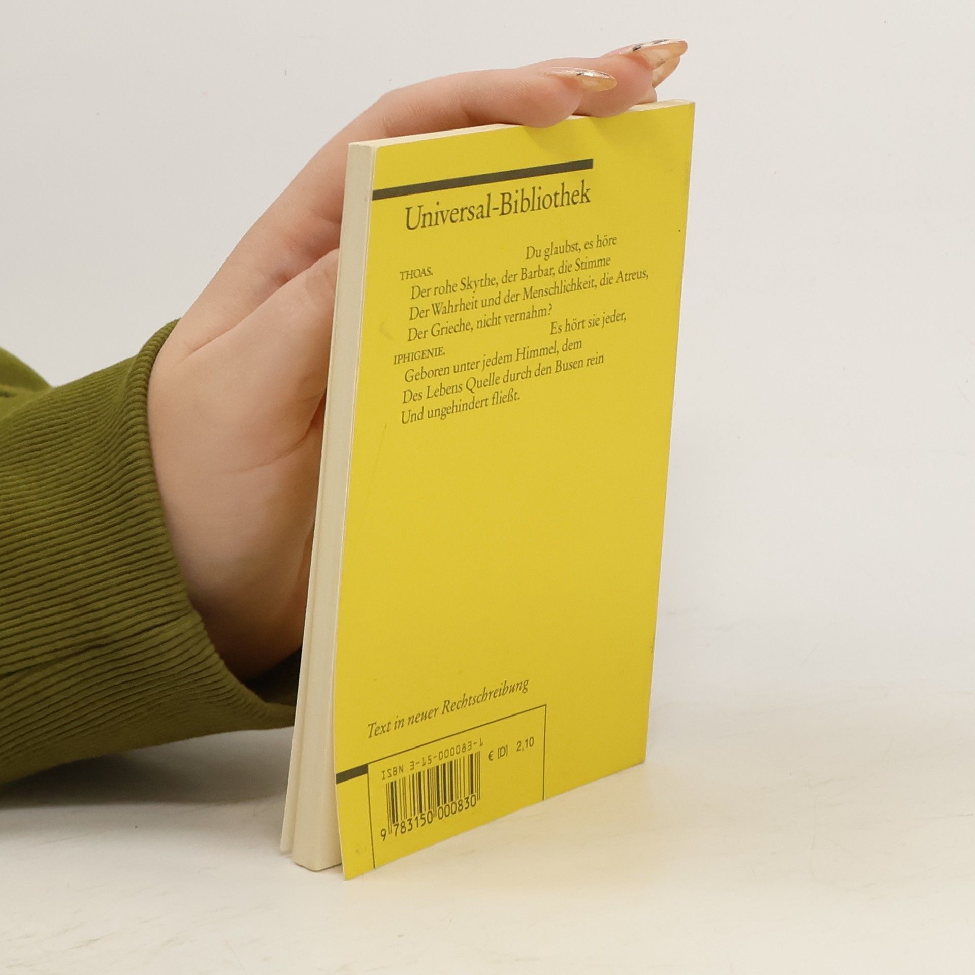 Johann Wolfgang Goethes klassisches Schauspiel in fünf Aufzügen 'Iphigenie auf Tauris' ist in mehreren Fassungen überliefert: 1779 wurde die erste Prosafassung in Weimar uraufgeführt, 1780 folgte eine Versfassung in freien Rhythmen, dann eine zweite Prosafassung und 1786 die zweite, während der ersten italienischen Reise fertiggestellte Fassung in Blankversen, die 1787 erstmals in Buchform erschien. Den Iphigenie-Stoff entnahm Goethe dem Drama 'Iphigenie bei den Taurern' des griechischen Dramatikers Euripides. Bei Goethe vollzieht sich das dramatische Geschehen im Inneren der Personen und in den „Rededuellen“. Seine Iphigenie verkörpert das Ideal der Klassik: Humanität, Aufrichtigkeit und Unschuld. Ihre tiefe Menschlichkeit befreit nicht nur den Bruder Orest vom Wahnsinn und von der Verfolgung durch die Erinnyen, sondern sorgt auch für einen friedlichen Abschied vom taurischen König Thoas. Text in neuer Rechtschreibung. - Anmerkungen von Joachim Angst und Fritz Hackert.