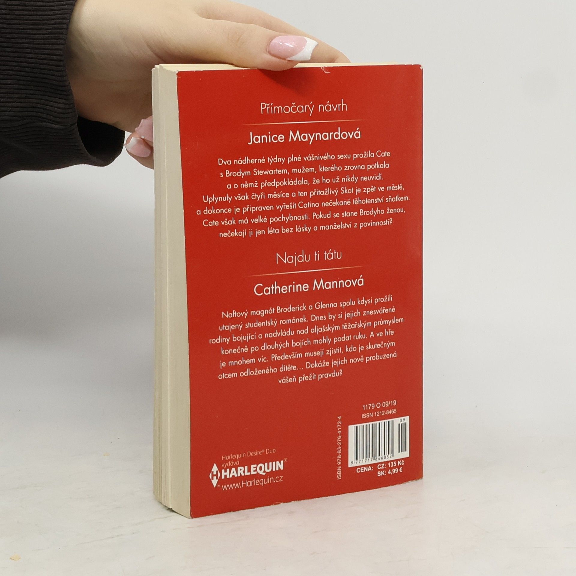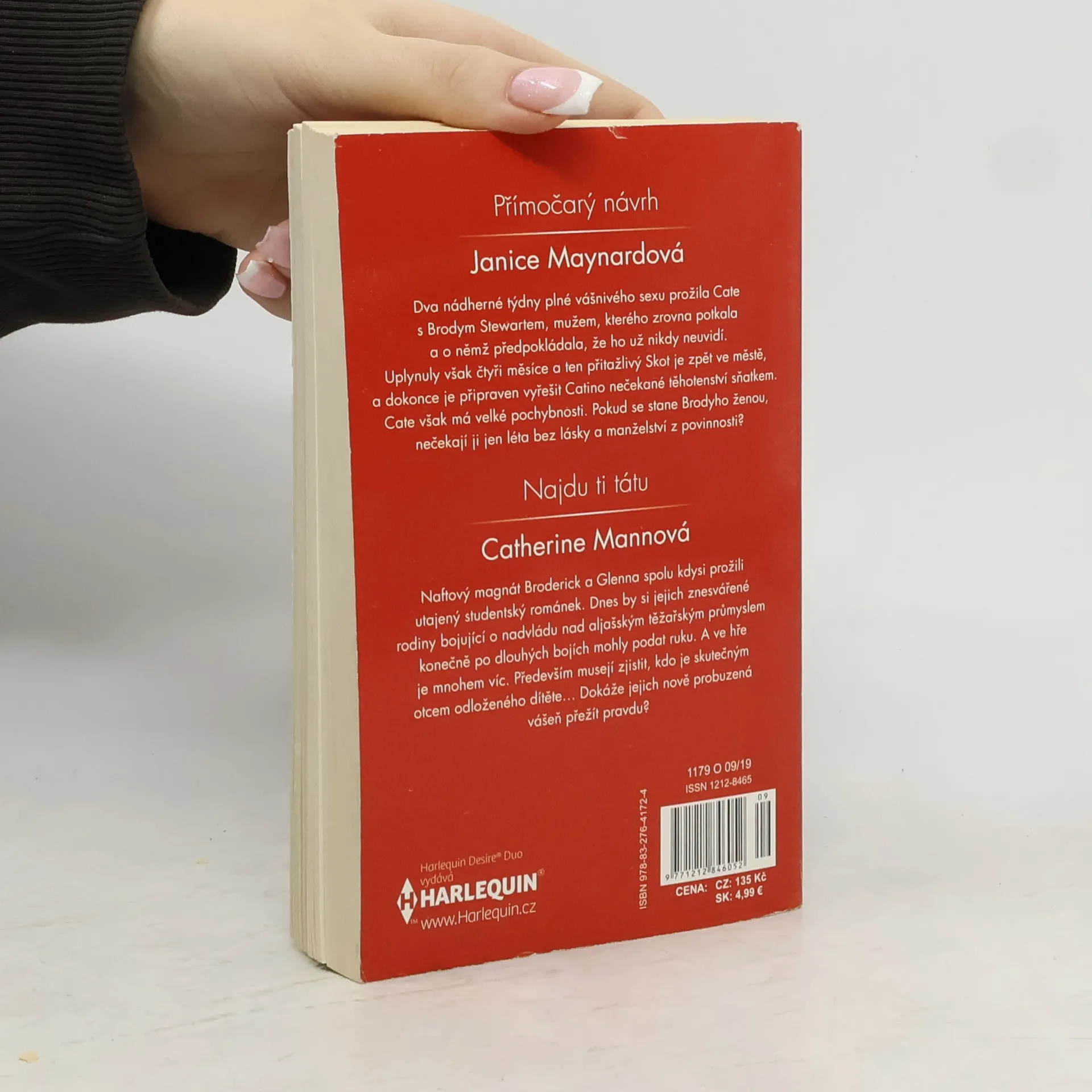 Přímočarý návrh - Dva nádherné týdny plné vášnivého sexu prožila Cate s Brodym Stewartem, mužem, kterého zrovna potkala a o němž předpokládala, že ho už nikdy neuvidí. Uplynuly však čtyři měsíce a ten přitažlivý Skot je zpět ve městě, a dokonce je připraven vyřešit Catino nečekané těhotenství sňatkem. Cate však má velké pochybnosti. Pokud se stane Brodyho ženou, nečekají ji jen léta bez lásky a manželství z povinnosti? Najdu ti tátu - Naftový magnát Broderick a Glenna spolu kdysi prožili utajený studentský románek. Dnes by si jejich znesvářené rodiny bojující o nadvládu nad aljašským těžařským průmyslem konečně po dlouhých bojích mohly podat ruku. A ve hře je mnohem víc. Především musejí zjistit, kdo je skutečným otcem odloženého dítěte? Dokáže jejich nově probuzená vášeň přežít pravdu?
