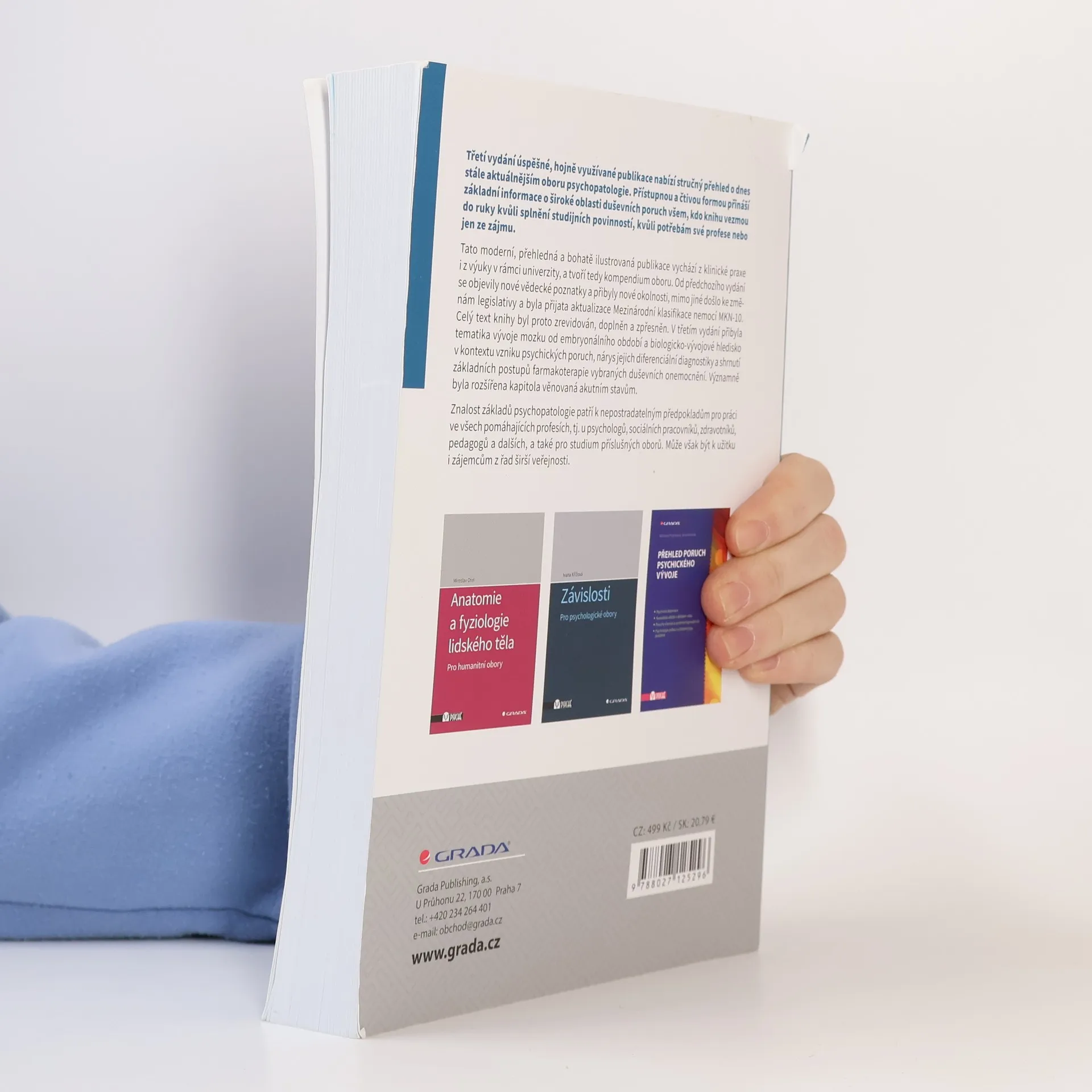 Třetí vydání úspěšné, hojně využívané publikace nabízí stručný přehled o dnes stále aktuálnějším oboru psychopatologie. Přístupnou a čtivou formou přináší základní informace o široké oblasti duševních poruch všem, kdo knihu vezmou do ruky kvůli splnění studijních povinností, kvůli potřebám své profese nebo jen ze zájmu. Tato moderní, přehledná a bohatě ilustrovaná publikace vychází z klinické praxe i z výuky v rámci univerzity, a tvoří tedy kompendium oboru. Od předchozího vydání se objevily nové vědecké poznatky a přibyly nové okolnosti, mimo jiné došlo ke změnám legislativy a byla přijata aktualizace Mezinárodní klasifikace nemocí MKN-10. Celý text knihy byl proto zrevidován, doplněn a zpřesněn. V 3. vydání přibyla tematika vývoje mozku od embryonálního období a biologicko-vývojové hledisko v kontextu vzniku psychických poruch, nárys jejich diferenciální diagnostiky a shrnutí základních postupů farmakoterapie vybraných duševních onemocnění. Významně byla rozšířena kapitola věnovaná akutním stavům. Znalost základů psychopatologie patří k nepostradatelným předpokladům pro práci ve všech pomáhajících profesích, tj. u psychologů, sociálních pracovníků, zdravotníků, pedagogů a dalších, a také pro studium příslušných oborů. Může však být k užitku i zájemcům z řad širší veřejnosti.