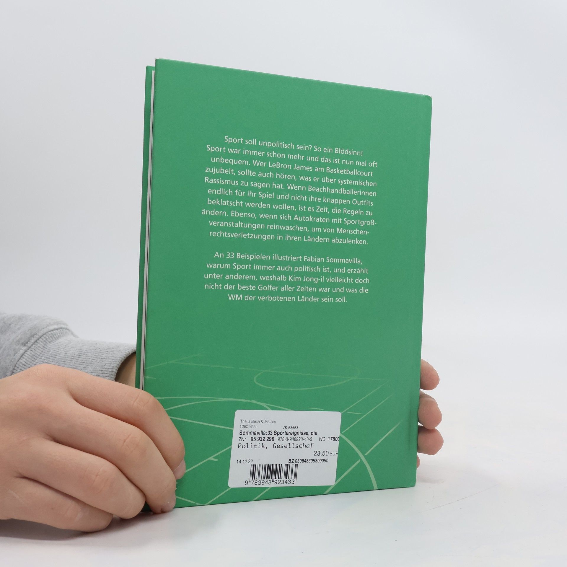 Sport soll unpolitisch sein? So ein Blödsinn! Viele Menschen treiben Spitzensport und noch viel mehr verfolgen ihn mit großer Leidenschaft. Niemand gibt aber seine politischen und moralischen Überzeugungen beim Betreten des Fußballstadions, der Tennishalle oder zu Beginn der Olympischen Spiele einfach so ab. Wer Lebron James am Bas- ketball-Court zujubelt, sollte auch hören, was er über systemischen Rassismus zu sagen hat. Wenn Beachvolleyballerinnen endlich für ihr Spiel und nicht ihre knappen Outfits beklatscht werden wollen, ist es Zeit, die Regeln zu ändern. Ebenso wenn sich Autokraten mit Sportgroßveranstaltungen reinwaschen, um von Menschenrechtsverletzungen in ih- ren Ländern abzulenken. In 33 Beispielen illustriert Fabian Sommavilla, warum Sport fast immer auch politisch ist, und erzählt unter anderem, weshalb Kim Jong-il vielleicht doch nicht der beste Golfer aller Zeiten war und was die WM der verbotenen Länder sein soll.