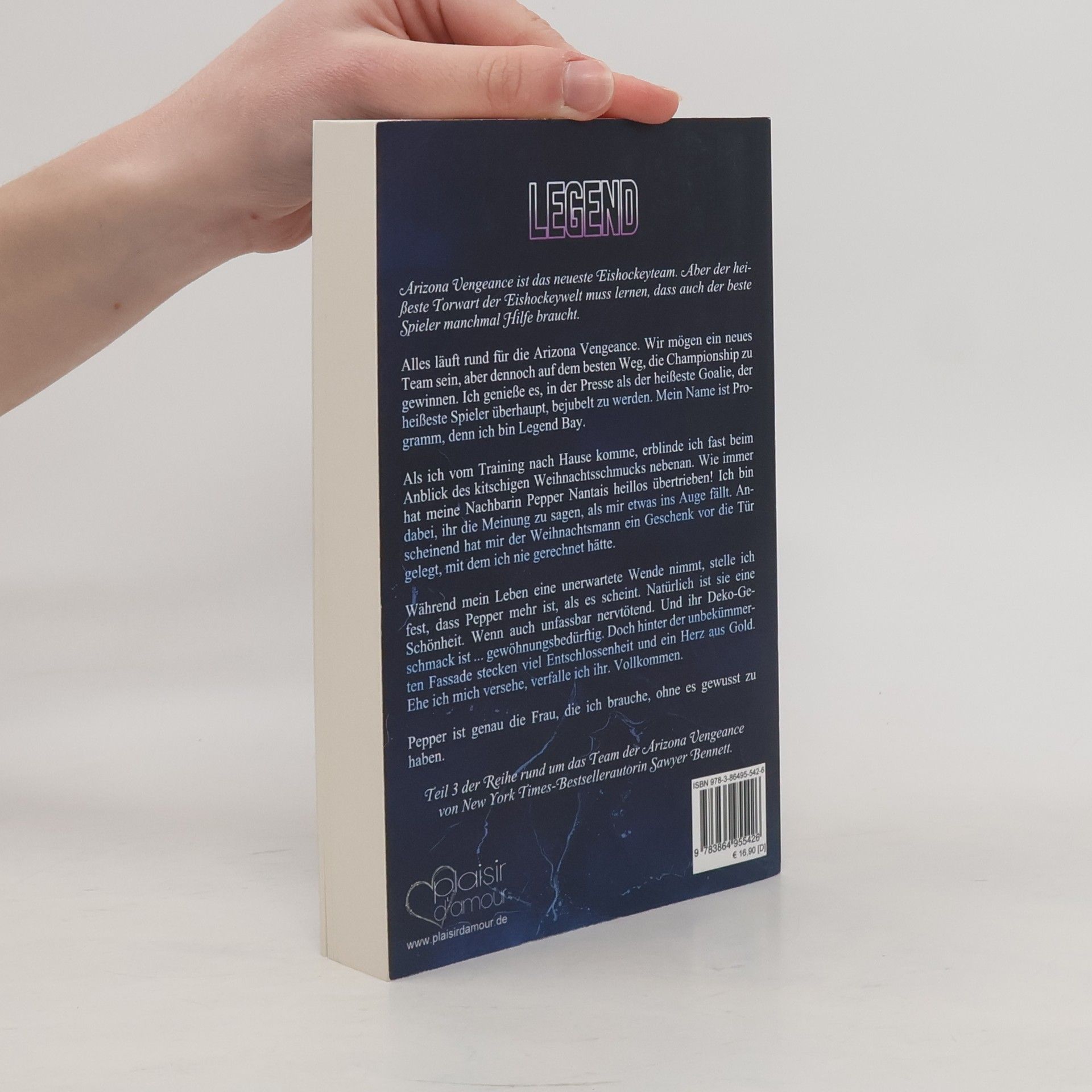 Arizona Vengeance ist das neueste Eishockeyteam. Aber der heißeste Torwart der Eishockeywelt muss lernen, dass auch der beste Spieler manchmal Hilfe braucht. Alles läuft rund für die Arizona Vengeance. Wir mögen ein neues Team sein, aber dennoch auf dem besten Weg, die Championship zu gewinnen. Ich genieße es, in der Presse als der heißeste Goalie, der heißeste Spieler überhaupt, bejubelt zu werden. Mein Name ist Programm, denn ich bin Legend Bay. Als ich vom Training nach Hause komme, erblinde ich fast beim Anblick des kitschigen Weihnachtsschmucks nebenan. Wie immer hat meine Nachbarin Pepper Nantais heillos übertrieben! Ich bin dabei, ihr die Meinung zu sagen, als mir etwas ins Auge fällt. Anscheinend hat mir der Weihnachtsmann ein Geschenk vor die Tür gelegt, mit dem ich nie gerechnet hätte. Während mein Leben eine unerwartete Wende nimmt, stelle ich fest, dass Pepper mehr ist, als es scheint. Natürlich ist sie eine Schönheit. Wenn auch unfassbar nervtötend. Und ihr Deko-Geschmack ist ... gewöhnungsbedürftig. Doch hinter der unbekümmerten Fassade stecken viel Entschlossenheit und ein Herz aus Gold. Ehe ich mich versehe, verfalle ich ihr. Vollkommen. Pepper ist genau die Frau, die ich brauche, ohne es gewusst zu haben. Teil 3 der Reihe rund um das Team der Arizona Vengeance von New York Times-Bestsellerautorin Sawyer Bennett.
