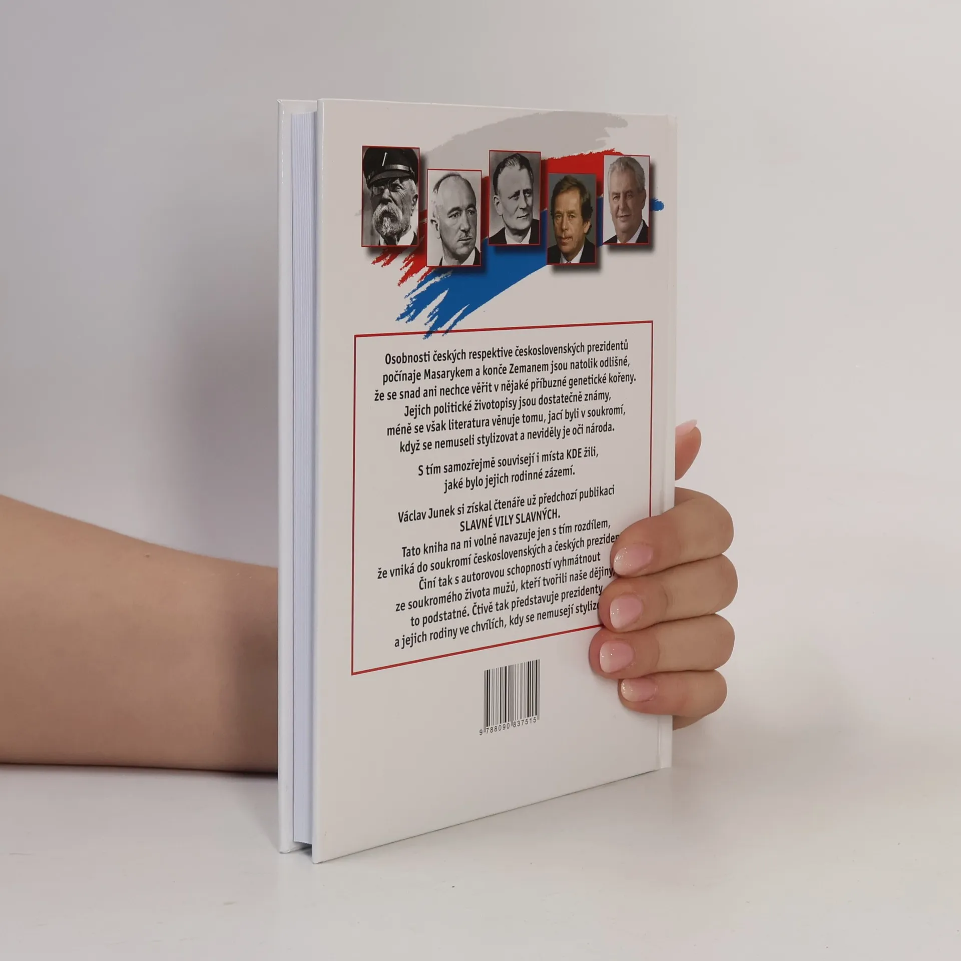 Osobnosti českých respektive československých prezidentů počínaje Masarykem a konče Zemanem jsou natolik odlišné, ze se snad ani nechce věřit v nějaké příbuzné genetické kořeny. Jejich politické životopisy jsou dostatečně známy, méně se však literatura věnuje tomu, jací byli v soukromí, když se nemuseli stylizovat a neviděly je oči národa. S tím samozřejmě souvisí i místa KDE žili, jaké bylo jejich rodinné zázemí. Václav Junek si získal čtenáře už předchozí publikaci Slavné vily slavných. Tato kniha na ni volně navazuje jen s tím rozdílem, ze vniká do soukromí československých a českých prezidentů. Činí tak s autorovu schopnosti vyhmátnout ze soukromého života mužů, kteří tvořili naše dějiny, to podstatné. Čtivě tak představuje prezidenty a jejich rodiny ve chvílích, kdy se nemusí stylizovat.