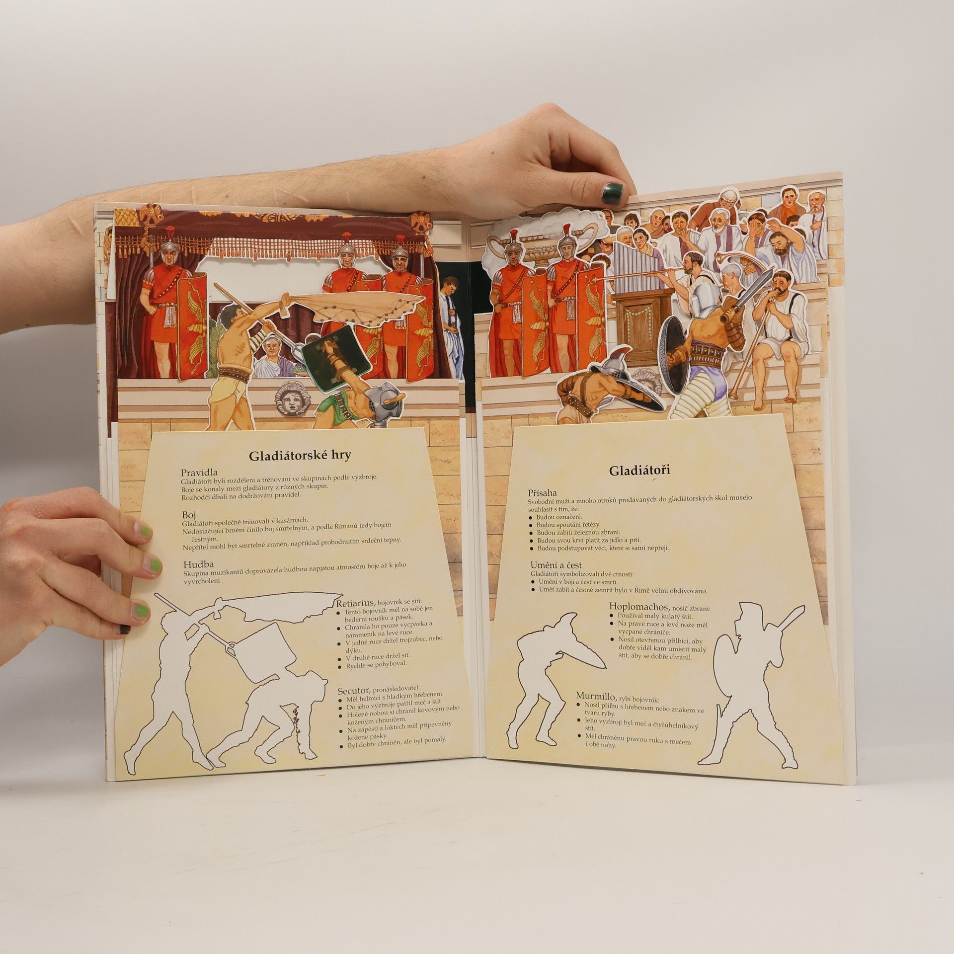 Toto fascinující rozkládací leporelo vás provede starobylým Římem v jeho zlaté éře a dozvíte se i mnoho zajímavých informací o životě v tomto úžasném městě: fórum se senátem, chrámy a davy lidí. Pozor! Marcus Scipio právě předvádí své spřežení a z kolosea se ozývá křičící dav. Ulice Říma jsou rušné, plné lidí a intrik. Část města, které bylo neuvěřitelně obrovským centrem římské říše, si můžete rozprostřít přímo u vás v pokoji!