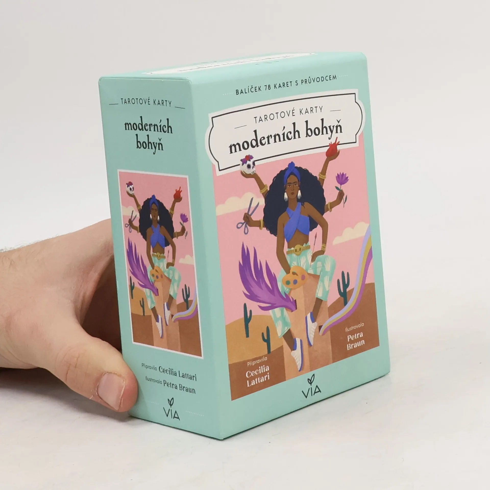 V knize Tarotové karty moderních bohyň Cecilia Lattari hledá paralely mezi životy moderních žen, které disponují podobnými vlastnostmi jako bohyně, jež jsou na kartách vyobrazeny. Poskytuje tak čtenáři moderní interpretaci nesmrtelného výkladu tarotových karet. Každá karta Velké arkány navíc obsahuje několik otázek, na něž je třeba hledat odpověď. Velkou arkánu následuje Malá arkána, kde se čtenář setkává s dalšími interpretacemi klasických motivů a které Cecilia Lattari opět stylizuje do ženského rodu. Kniha obsahuje i návod na výklad pro ty, kteří se s tarotem setkávají poprvé. Každá karta je doprovázena nádhernou ilustrací Petry Braunové, jež posouvá meze představivosti a nutí čtenáře zamyslet se nad jejich významem.
