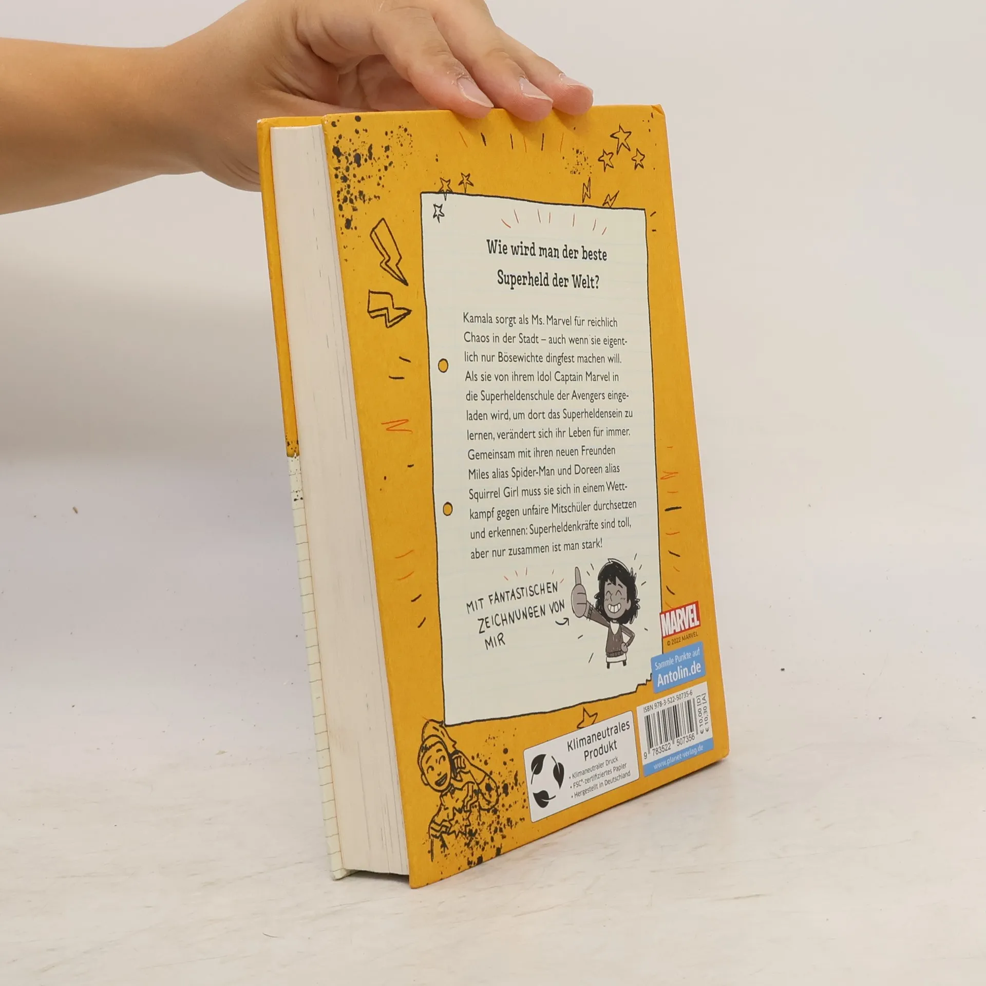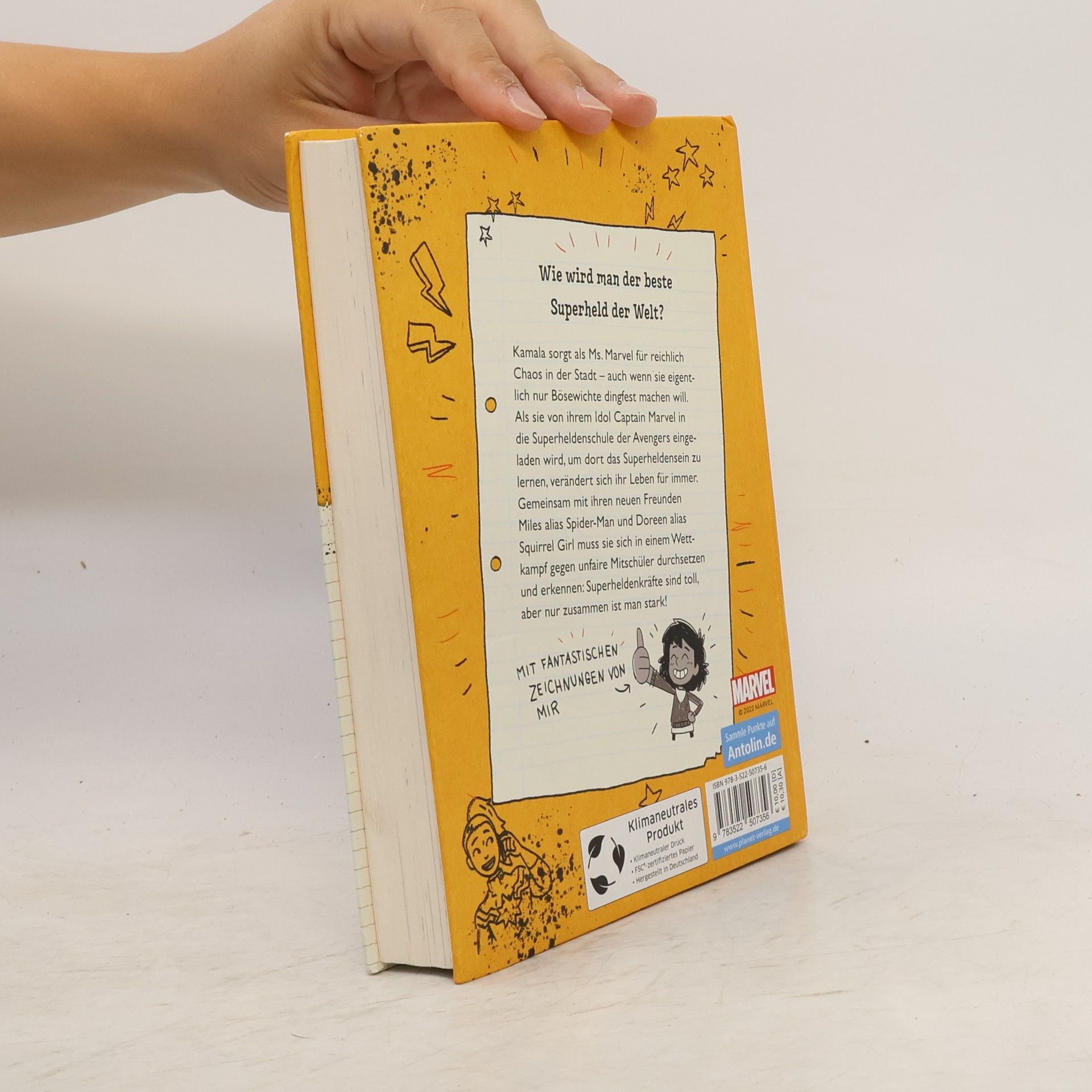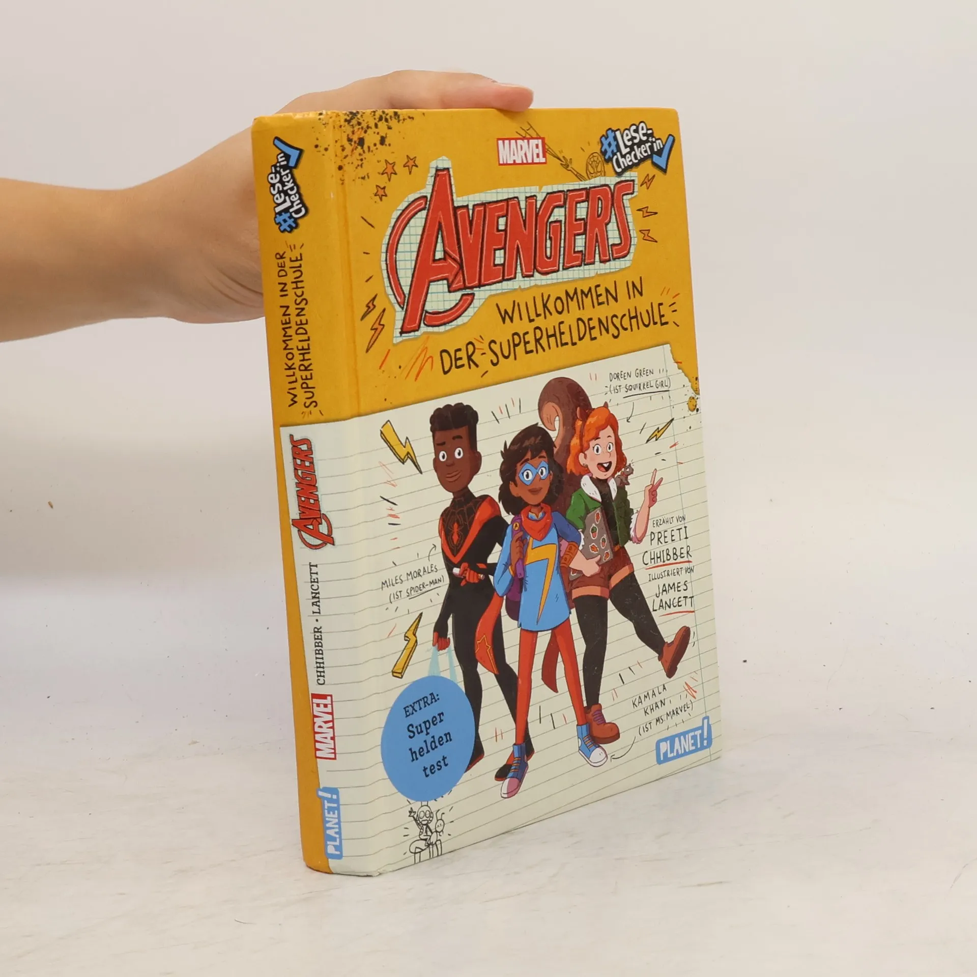 #LeseChecker*in – einfach Spaß haben! #Eine Original-Marvel-Geschichte #Aufgelockertes Layout erleichtert das Lesen #Mit Superheldentest Kamala Khans Superheldenname ist Ms Marvel und sie kämpft gegen das Böse! Als Ms. Marvel einen Brief von Captain Marvel, ihrem Idol, erhält, verändert sich ihr Leben schlagartig: Sie wird in die berühmte Superheldenschule der Avengers eingeladen. Auf ihrem Stundenplan steht jetzt unter anderem Unterricht bei Thor und ein superwichtiger Wettkampf. Gemeinsam mit ihren neuen Freunden Miles (Spider-Man) und Doreen (Squirrel Girl) bildet sie ein Team. Sie müssen sich ab jetzt gegen unfaire Mitschüler durchsetzen, alle Aufgaben bravourös meistern und lernen, dass man gemeinsam stärker ist als allein. Eine spannende Superheldengeschichte für alle Marvel-Fans und die, die es werden wollen! In der Serie bereits erschienen: // Band 1: Willkommen in der Superheldenschule // Band 2:: Superschurken schlafen nie