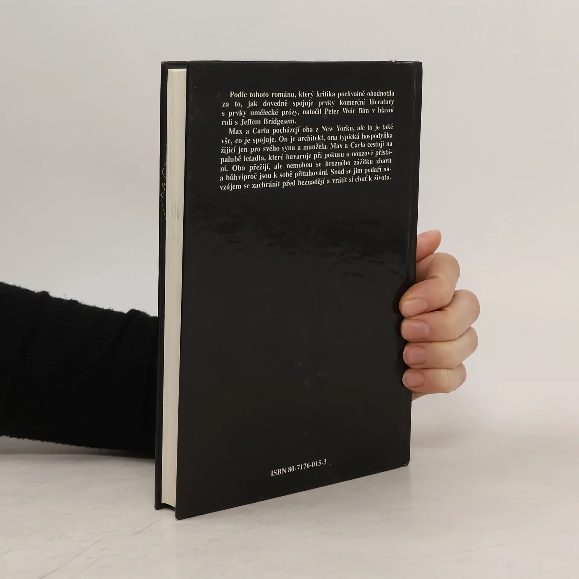 Psychologický román amerického autora zachycuje velmi věrohodně a plasticky účinky posttraumatického šoku v dramatickém příběhu dvou pasažérů, kteří přežili těžkou leteckou havárii. Na palubě letadla cestuje bohatý a vzdělaný advokát a mezi ostatními i prostá mladá žena z italské čtvrti v New Yorku, nenáročná manželka hrubiánského muže. Při přistávacím manévru dojde k havárii, při které zahyne advokátův přítel a společník a ženin dvouletý syn. Oba se nemohou s otřesnou zkušeností vyrovnat, nedokážou se zařadit do všedního života a přestávají si i rozumět se svými blízkými. Vytvoří se mezi nimi zvláštní neobyčejně pevné pouto - jen oni dva si navzájem dokážou poskytnout útěchu a pomoc a díky tomu se po čase vrátit k normálnímu životu a ke svým rodinám.