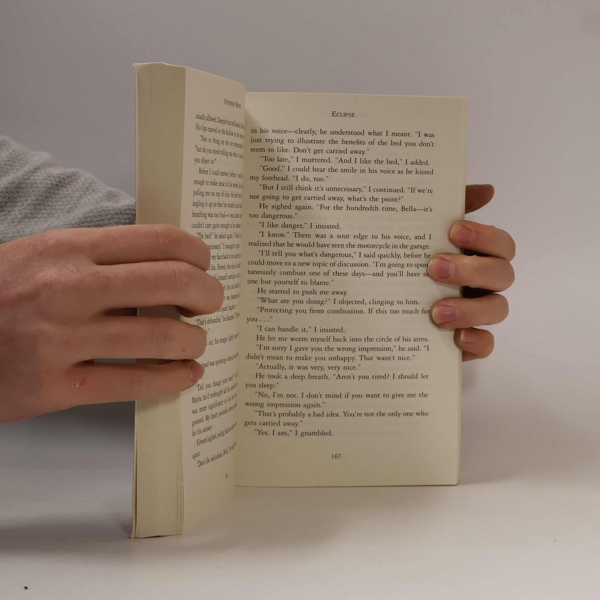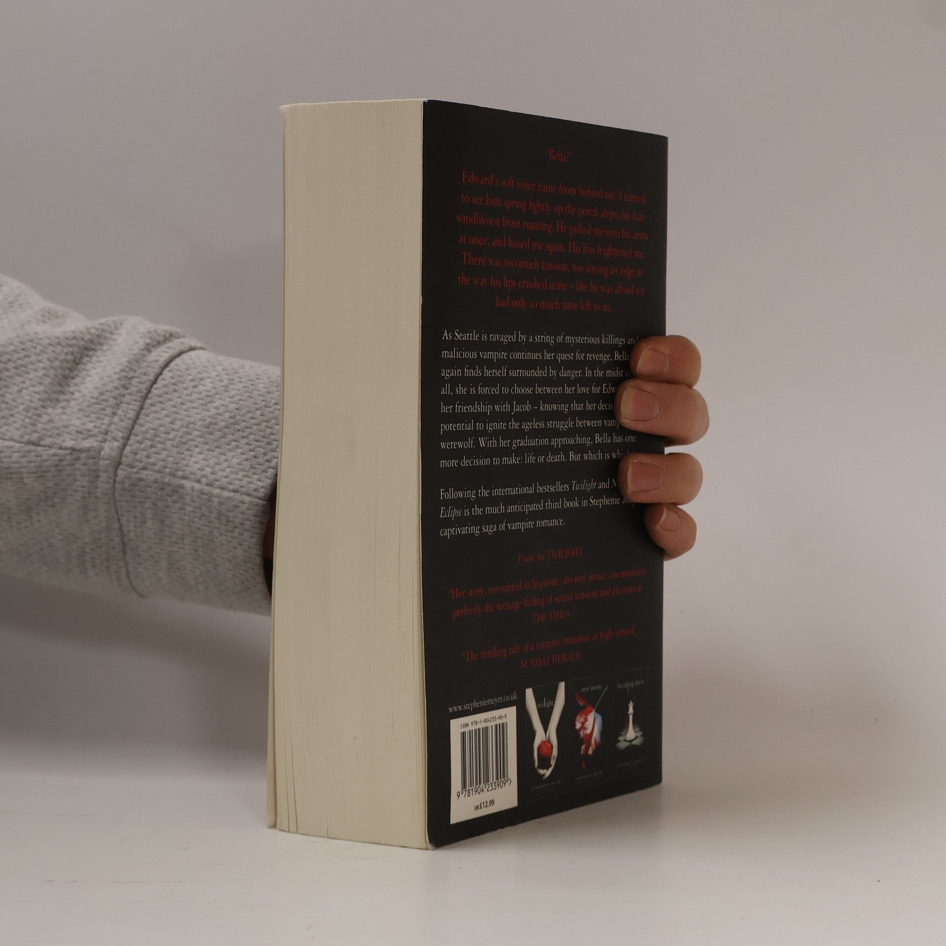 Docela dobrý díl. V polovině knihy jsem sice knihu musela odložit, jelikož přestávala být chuť na čtení, ale když se člověk do příběhu opravdu začte, tak by se to zvádlo přečíst klidně za tři dny s přehledem. To já bohužel neumím, musím mít na to chuť. A teď k příběhu. Edwarda mám ráda jako postavu, přijde mi kultivovaný, nesobecký a hodně zamilovaný do Belly. Jacob je pro mě nevychovaný, sobecký Vlk, který chce Bellu jen pro sebe. Ano jsem tým Edward a nebojím se to přiznat. Ale Bella se v téhle knize chová vážně na facku. Po celou dovu příběhu jen fňuká, nebo si stěžuje, že to má šíleně těžké a nemůže si vybrat mezi upírem a vlkodlakem, i když nejšťastnější je jenom s Edwardem. Její chování a rozhodování mě opravdu dostávalo k šílenství, ale možná to byl prostě jen autorčiný cíl.
