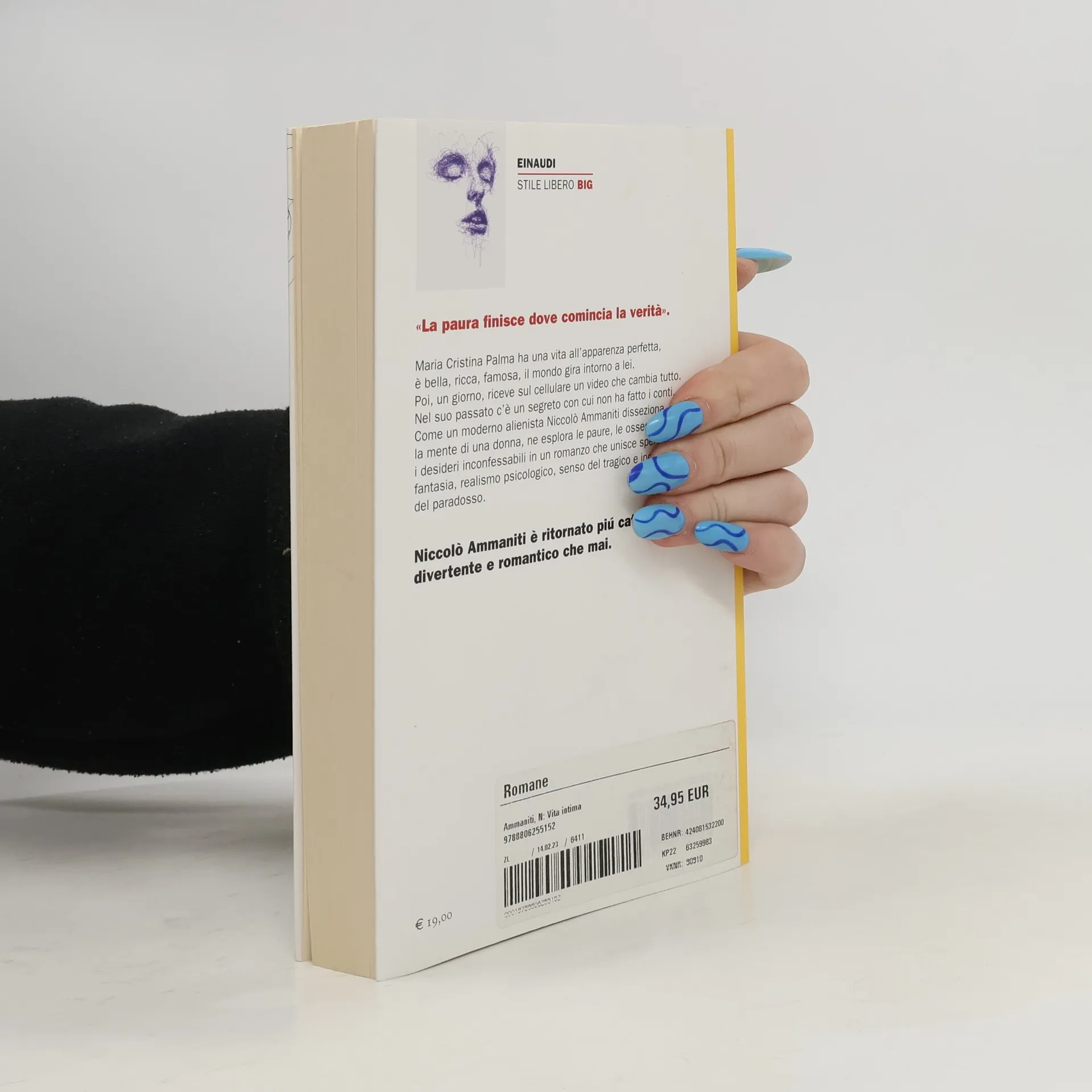 "Maria Cristina Palma ha una vita all'apparenza perfetta, è bella, ricca, famosa, il mondo gira intorno a lei. Poi, un giorno, riceve sul cellulare un video che cambia tutto. Nel suo passato c'è un segreto con cui non ha fatto i conti. Come un moderno alienista Niccolò Ammaniti disseziona le mente di una donna, ne esplora le paure, le ossessioni, i desideri inconfessabili in un romanzo che unisce spericolata fantasia, realismo psicologico, senso del tragico e incanto del paradosso."--Page 4 of cover