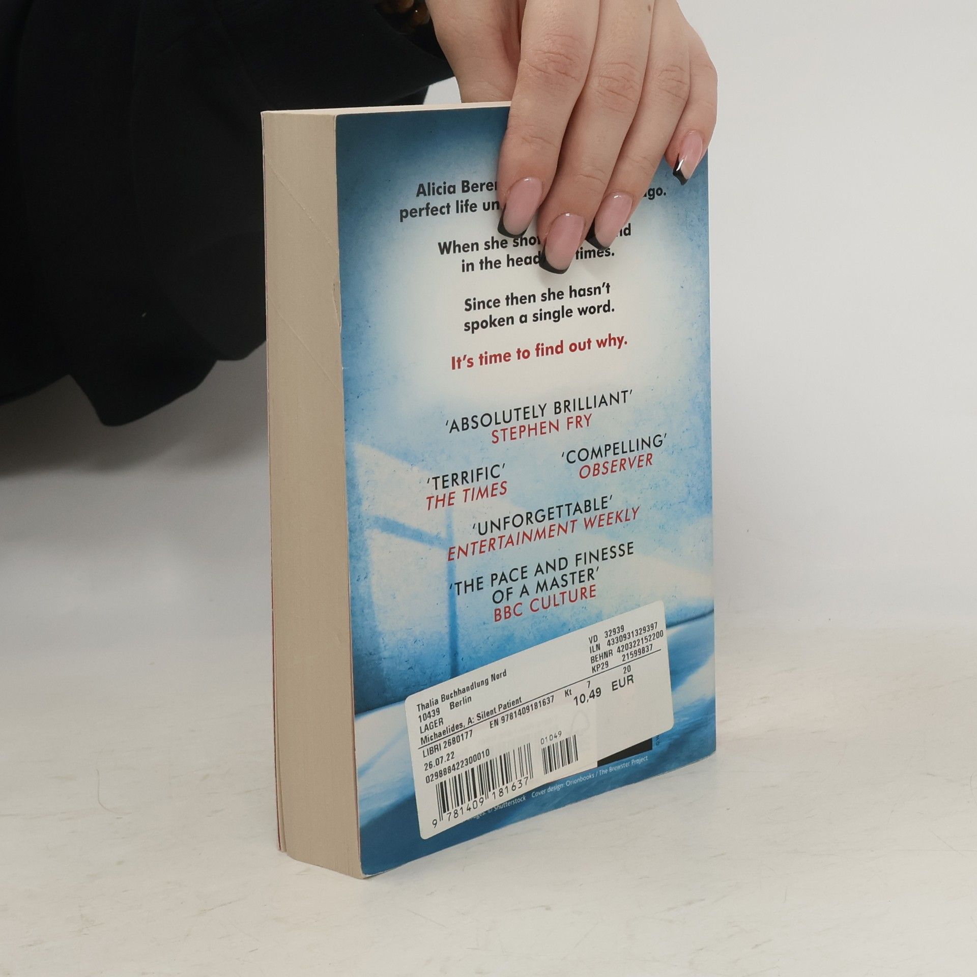 - THE RECORD-BREAKING, MULTIMILLION COPY GLOBAL BESTSELLER AND TIKTOK SENSATION - Discover the #1 New York Times and Sunday Times bestselling thriller with a jaw-dropping twist that everyone is talking about - as seen on TikTok. Soon to be a major film. Alicia Berenson lived a seemingly perfect life until one day six years ago. When she shot her husband in the head five times. Since then she hasn't spoken a single word. It's time to find out why. READERS LOVE THE SILENT PATIENT ⭐⭐⭐⭐⭐ 'Everything you need from a psychological thriller with a killer twist that is impossible to see coming!' ⭐⭐⭐⭐⭐ 'Fiendishly clever ... believe the hype.' ⭐⭐⭐⭐⭐ 'Grabs your afternoon from the start and never lets go' ⭐⭐⭐⭐⭐ 'A fantastic thriller with an incredible plot twist that I really didn't see coming. I highly recommend.' ⭐⭐⭐⭐⭐ 'OMG, my heart is still pounding from the final chapters of this amazing thriller.' ⭐⭐⭐⭐⭐ 'I'm honestly speechless, best book I have read for a very long time' ⭐⭐⭐⭐⭐ 'The twists when they come, wow oh wow!' CRITICALLY ACCLAIMED 'The perfect thriller' AJ FINN 'Terrific' - THE TIMES Crime Book of the Month 'Smart, sophisticated suspense' - LEE CHILD 'Compelling' - OBSERVER 'Absolutely brilliant' - STEPHEN FRY 'A totally original psychological mystery' - DAVID BALDACCI 'One of the best thrillers I've read this year' - CARA HUNTER 'The pace and finesse of a master' - BBC CULTURE