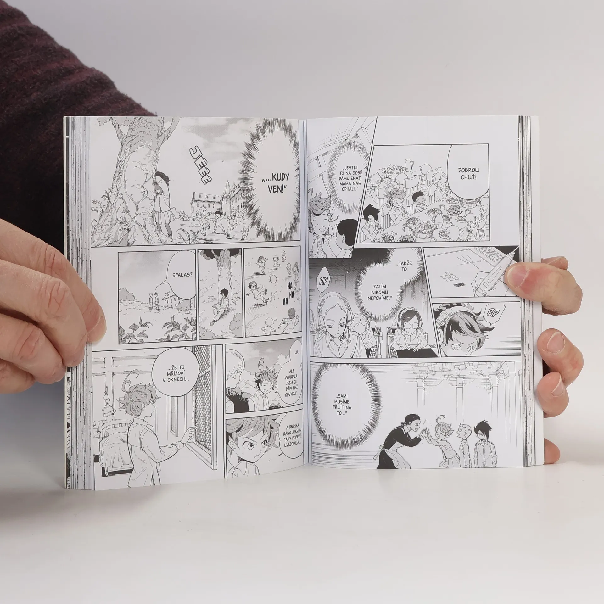 Děti v sirotčinci Grace Field House žijí pod dohledem laskavé vychovatelky a zdá se, že ke štěstí jim téměř nic nechybí. Netuší však, že to je jen pozlátko, a že se z nich všech postupně stane potrava pro démony. Podaří se jim zjistit pravdu – a utéct – dřív, než bude příliš pozdě? O tom vypráví jedna z nejpopulárnějších mang současnosti, která se rychle mění v komiksovou legendu!