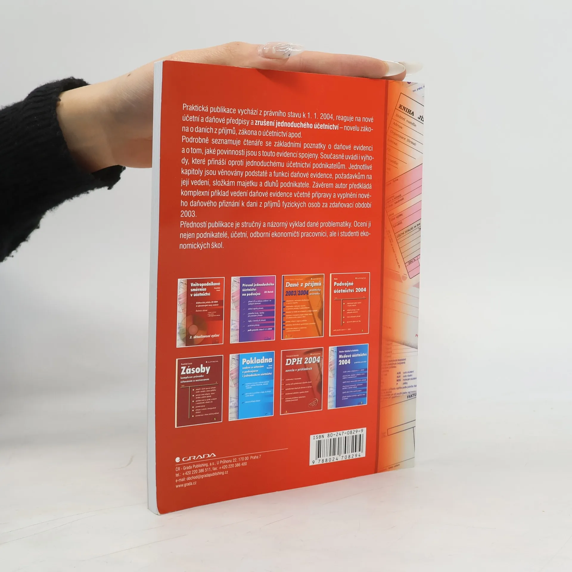 Praktická publikace vychází z právního stavu k 1. 1. 2004, reaguje na nové účetní a daňové předpisy a zrušení jednoduchého účetnictví – novelu zákona o daních z příjmů, zákona o účetnictví apod. Podrobně seznamuje čtenáře se základními poznatky o daňové evidenci a o tom, jaké povinnosti jsou s touto evidencí spojeny. Současně uvádí i výhody, které přináší oproti jednoduchému účetnictví podnikatelům. Jednotlivé kapitoly jsou věnovány podstatě a funkci daňové evidence, požadavkům na její vedení, složkám majetku a dluhů podnikatele. Závěrem autor předkládá komplexní příklad vedení daňové evidence včetně přípravy a vyplnění nového daňového přiznání k dani z příjmů fyzických osob za zdaňovací období 2003. Předností publikace je stručný a názorný výklad dané problematiky. Ocení ji nejen podnikatelé, účetní, odborní ekonomičtí pracovníci, ale i studenti ekonomických škol.
