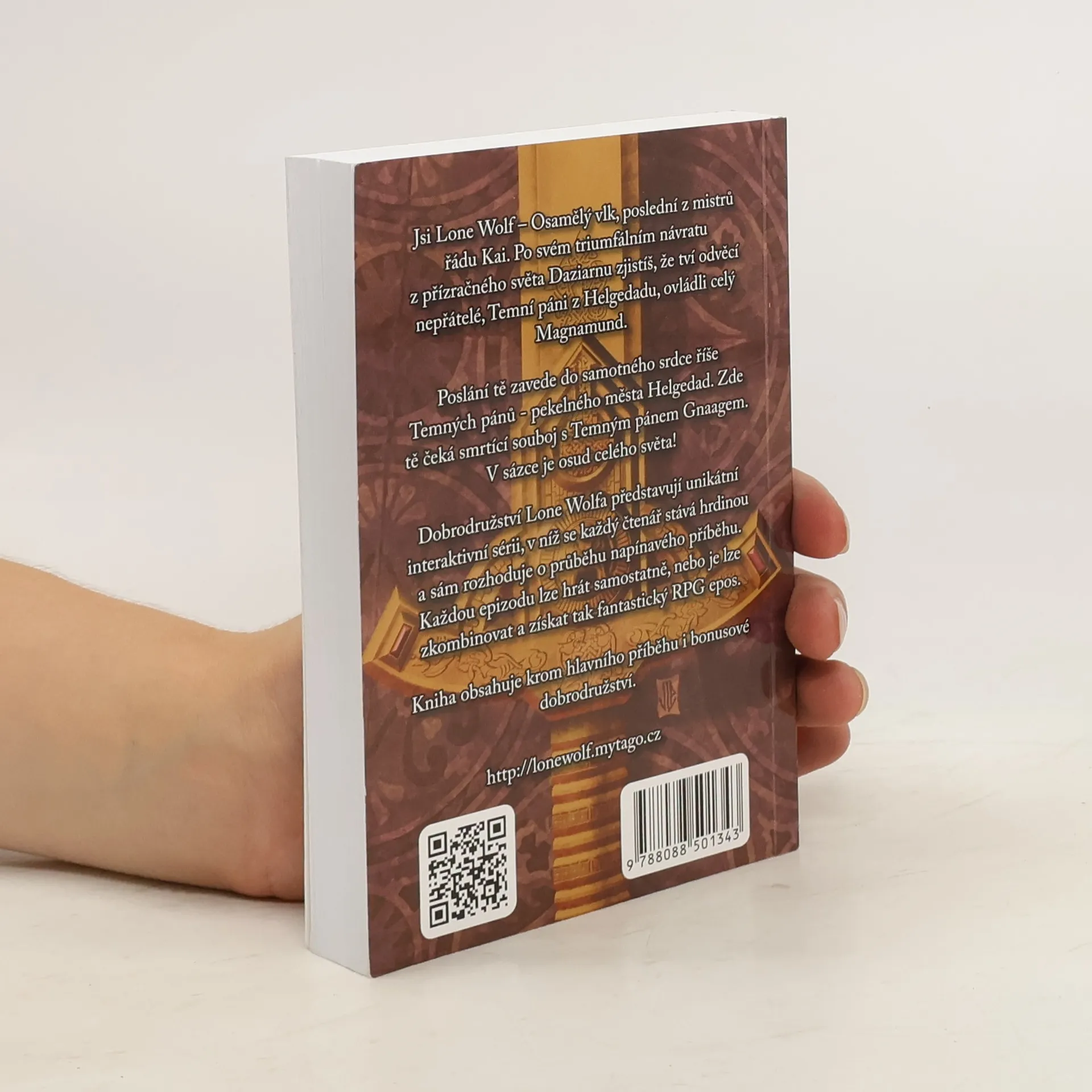 Jsi Lone Wolf – Osamělý vlk, poslední z mistrů řádu Kai. Po svém triumfálním návratu z přízračného světa Daziarnu zjistíš, že tví odvěcí nepřátelé, Temní páni z Helgedadu, ovládli celý Magnamund. Poslání tě zavede do samotného srdce říše Temných pánů – pekelného města Helgedad. Zde tě čeká smrtící souboj s Temným pánem Gnaagem. V sázce je osud celého světa! Dobrodružství Lone Wolfa představují unikátní interaktivní sérii, v níž se každý čtenář stává hrdinou a sám rozhoduje o průběhu napínavého příběhu. Každou epizodu lze hrát samostatně, nebo je lze zkombinovat a získat tak fantastický RPG epos. Gamebook obsahuje krom hlavního příběhu i bonusové dobrodružství. Ukázka z knihy