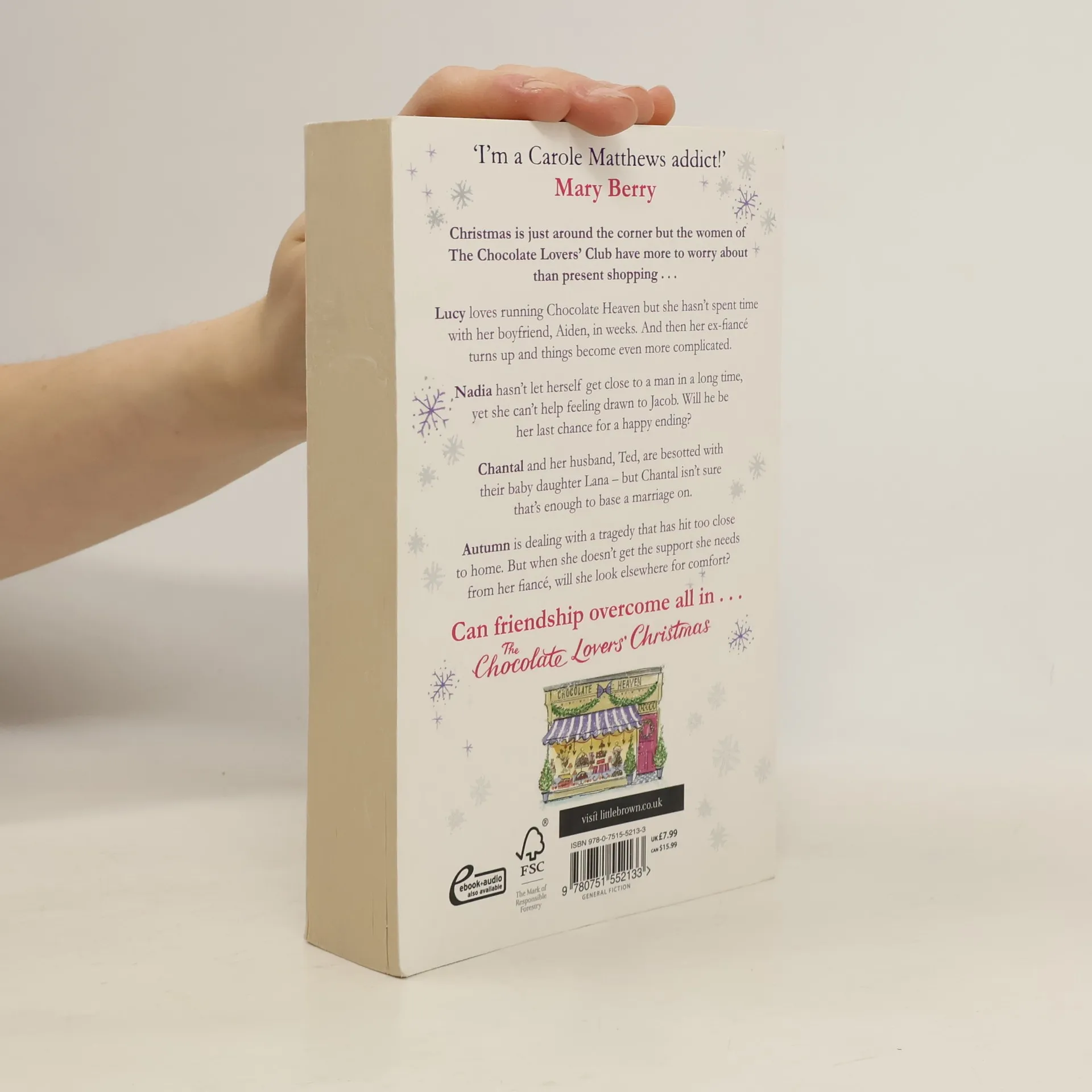 Christmas is just around the corner but the women of The Chocolate Lovers' Club have more to worry about than present shopping . . . Lucy loves running Chocolate Heaven but she hasn't spent time with her boyfriend, Aiden, in weeks. And then her ex-fiance turns up and things become even more complicated. Nadia hasn't let herself get close to a man in a long time, yet she can't help feeling drawn to Jacob. Will he be her last chance for a happy ending? Chantal and her husband, Ted, are besotted with their baby daughter Lana - but she's not sure that's enough to base a marriage on. Autumn is dealing with a tragedy that has hit too close to home. But when she doesn't get the support she needs from her fiance, will she look elsewhere for comfort? Can friendship overcome all in . . . The Chocolate Lovers' Christmas.