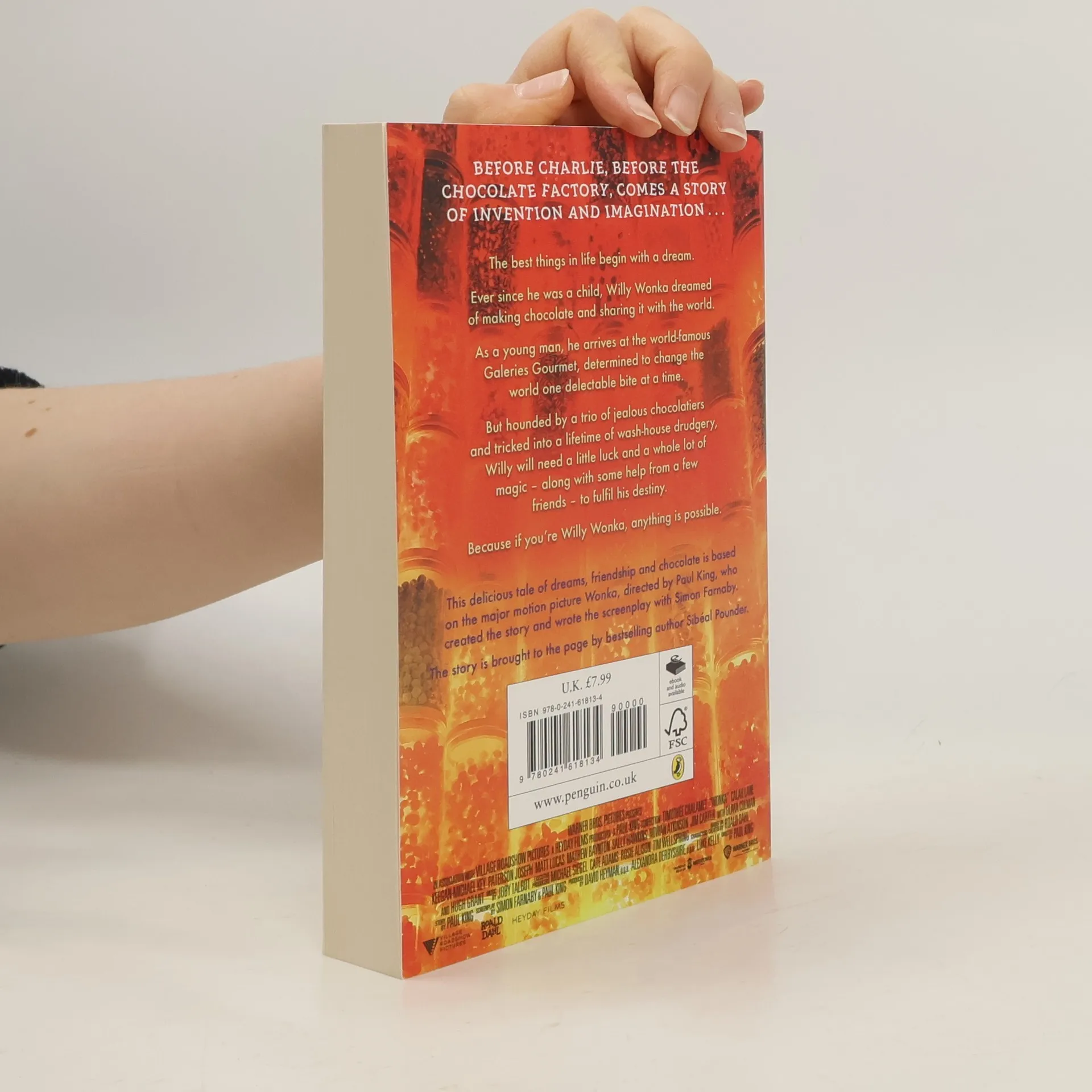 WONKA tells the wondrous story of how the world's greatest inventor, magician and chocolate-maker becomes the beloved Willy Wonka we know today. Based on the upcoming Warner Bros. Pictures movie WONKA, created by Paul King and written for film by Simon Farnaby and Paul King.An intoxicating mix of magic and music, mayhem and emotion, all told with fabulous heart and humour - WONKA introduces readers to a young Willy Wonka, chock-full of ideas and determined to change the world one delectable bite at a time . . . proving that the best things in life begin with a dream, and if you're lucky enough to meet Willy Wonka, anything is possible.