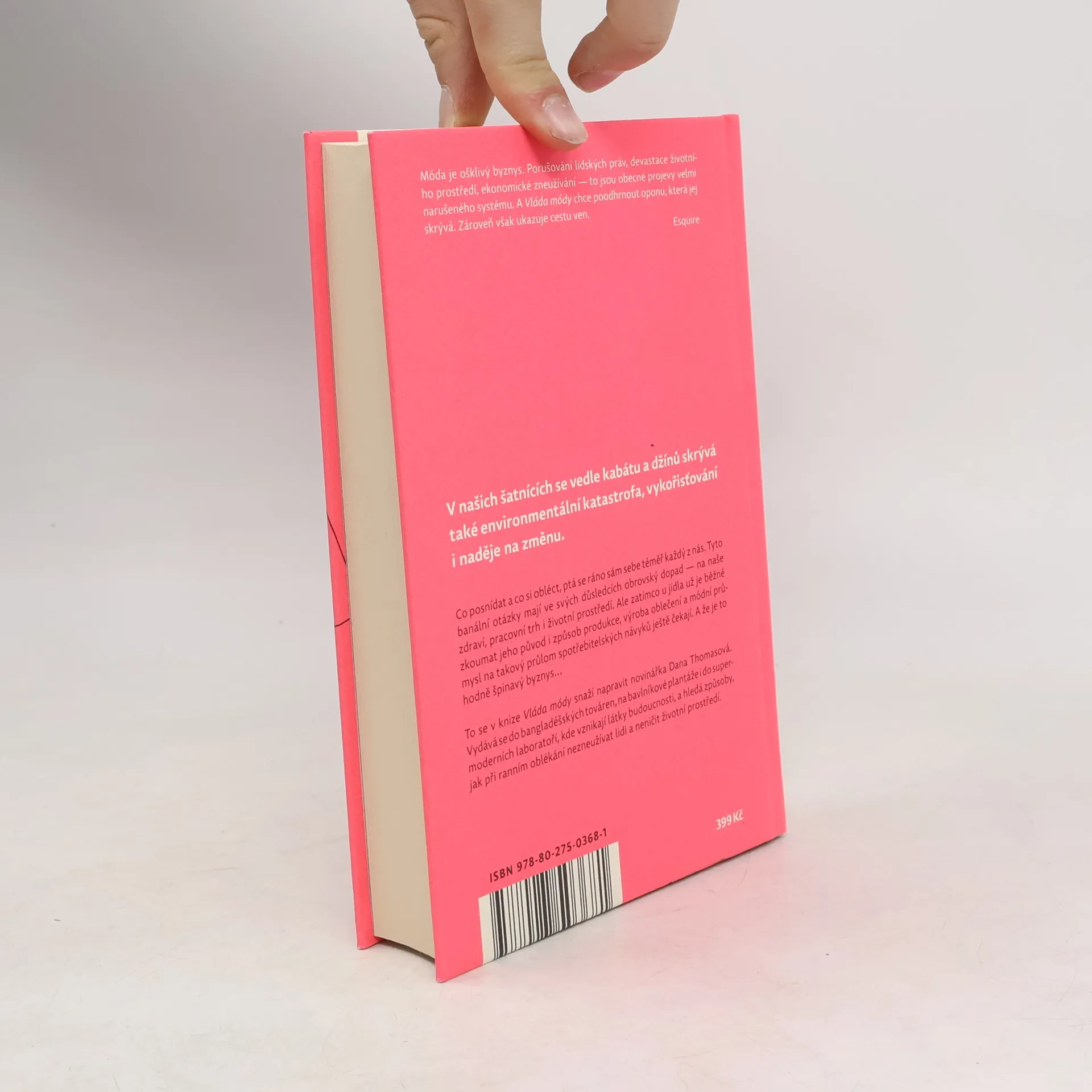 V našich šatnících se vedle kabátu a džín skrývá také environmentální katastrofa, vykořisťování i naděje na změnu. Co posnídat a co si obléct, ptá se ráno sám sebe téměř každý z nás. Tyto banální otázky mají ve svých důsledcích obrovský dopad — na naše zdraví, pracovní trh i životní prostředí. Ale zatímco u jídla už je běžné zkoumat jeho původ i způsob produkce, výroba oblečení a módní průmysl na takový průlom spotřebitelských návyků teprve čekají. A že je to hodně špinavý byznys… To se v knize Vláda módy snaží napravit novinářka Dana Thomasová. Vydává se do bangladéšských továren, na bavlníkové plantáže i do supermoderních laboratoří, kde vznikají látky budoucnosti, a hledá způsoby, jak při ranním oblékání nezneužívat lidi a neničit životní prostředí.