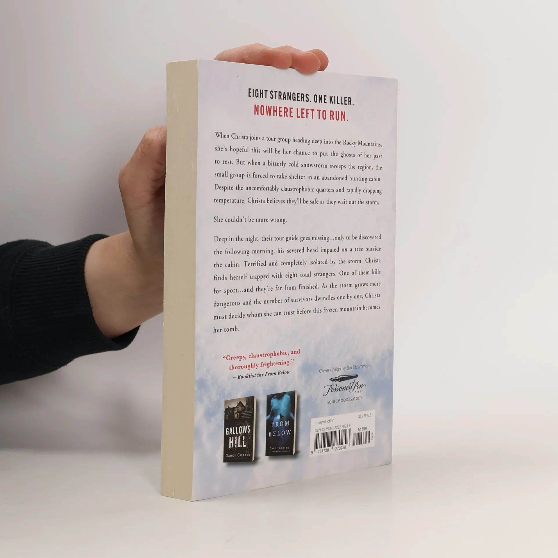 From bestselling author Darcy Coates comes Dead of Winter, a remote cabin in the snowy wilderness thriller that will teach you to trust no one. There are eight strangers. One killer. Nowhere left to run.When Christa joins a tour group heading deep into the snowy expanse of the Rocky Mountains, she's hopeful this will be her chance to put the ghosts of her past to rest. But when a bitterly cold snowstorm sweeps the region, the small group is forced to take shelter in an abandoned hunting cabin. Despite the uncomfortably claustrophobic quarters and rapidly dropping temperature, Christa believes they'll be safe as they wait out the storm.She couldn't be more wrong.Deep in the night, their tour guide goes missing...only to be discovered the following morning, his severed head impaled on a tree outside the cabin. Terrified, and completely isolated by the storm, Christa finds herself trapped with eight total strangers. One of them kills for sport...and they're far from finished. As the storm grows more dangerous and the number of survivors dwindles one by one, Christa must decide who she can trust before this frozen mountain becomes her tomb.