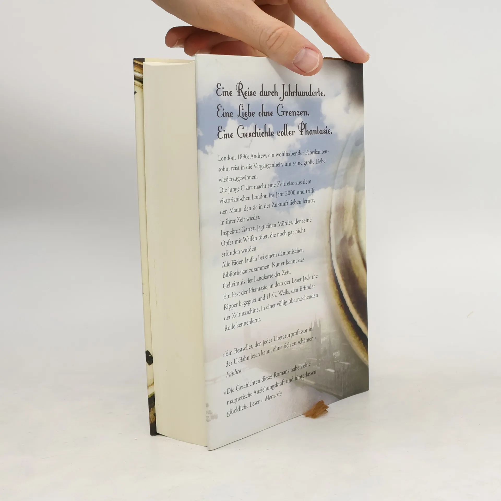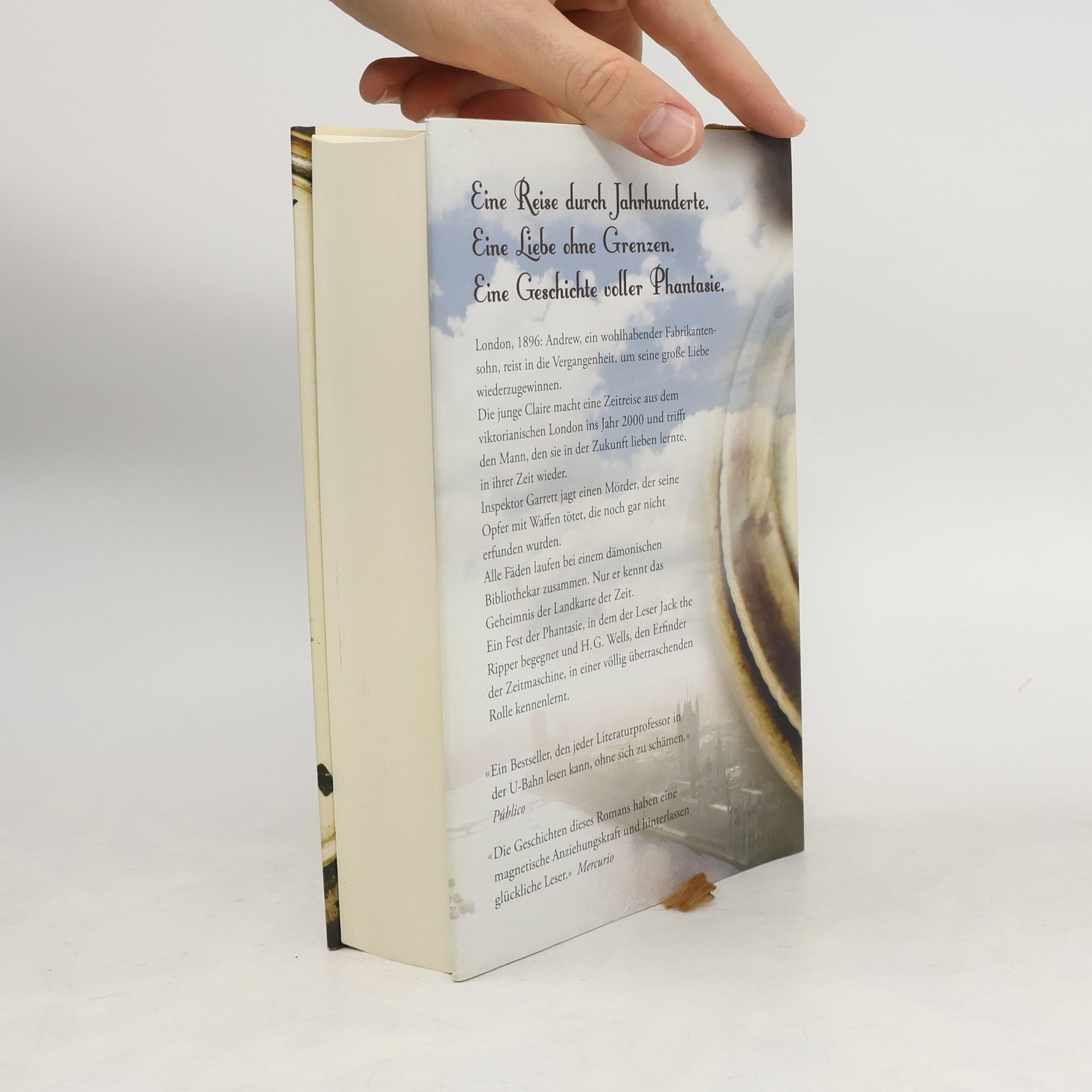 Eine Reise durch Jahrhunderte. Eine Liebe ohne Grenzen. Eine Geschichte voller Phantasie.London, 1896: Andrew, ein wohlhabender Fabrikantensohn, reist in die Vergangenheit, um seine große Liebe wiederzugewinnen. Die junge Claire macht eine Zeitreise aus dem viktorianischen London ins Jahr 2000 und trifft den Mann, den sie in der Zukunft lieben lernte, in ihrer Zeit wieder. Inspektor Garrett jagt einen Mörder, der seine Opfer mit Waffen tötet, die noch gar nicht erfunden wurden. Alle Fäden laufen bei einem dämonischen Bibliothekar zusammen. Nur er kennt das Geheimnis der Landkarte der Zeit. Ein Fest der Phantasie, in dem der Leser Jack the Ripper begegnet und H. G. Wells, den Erfinder der Zeitmaschine, in einer völlig überraschenden Rolle kennenlernt.«Ein Bestseller, den jeder Literaturprofessor in der U-Bahn lesen kann, ohne sich zu schämen.» Público«Die Geschichten dieses Romans haben eine magnetische Anziehungskraft und hinterlassen glückliche Leser.» Mercurio