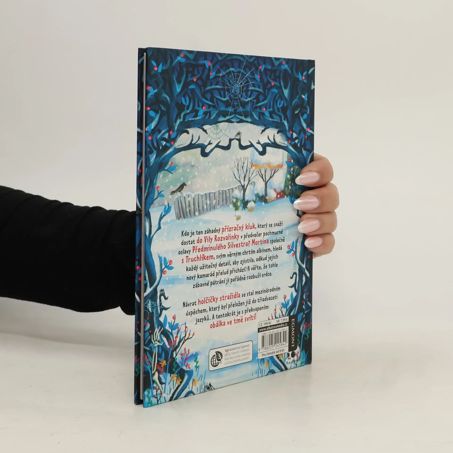 Kdo je ten záhadný přízračný kluk, který se snaží dostat do Vily Rozvalinky v předvečer pochmurné oslavy Předminulého Silvestra? Mortina společně s Truchlíkem, svým věrným chrtím albínem, hledá každý užitečný detail, aby zjistila, odkud jejich nový kamarád přelud přichází. A věřte, že tohle zábavné pátrání jí pořádně rozbuší srdce. Návrat holčičky strašidla se stal mezinárodním úspěchem, který byl přeložen již do třiadvaceti jazyků. A tentokrát je s překvapením: obálka ve tmě svítí!