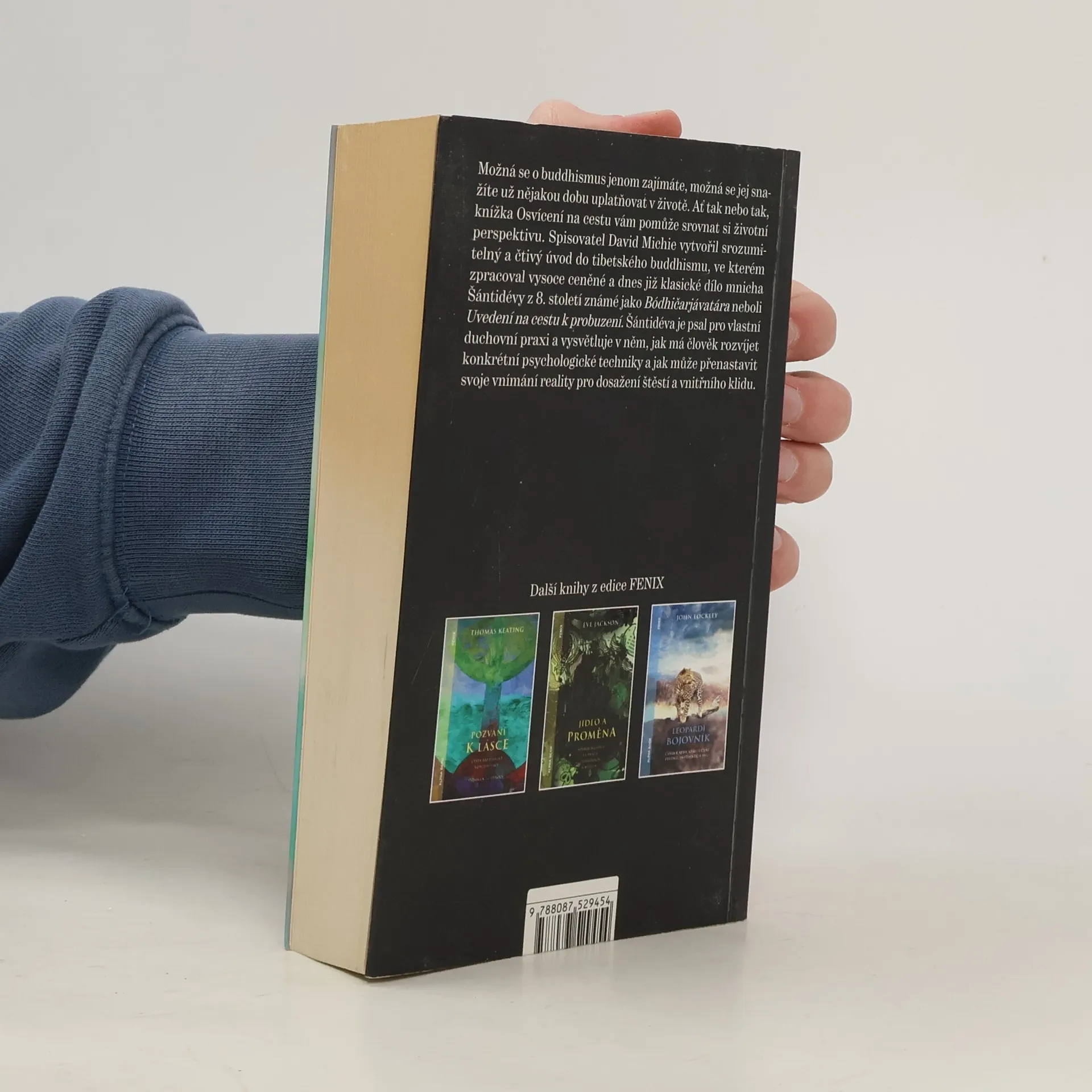 Možná se o buddhismus jenom zajímáte, možná se jej snažíte už nějakou dobu uplatňovat v životě. Ať tak nebo tak, knížka Osvícení na cestu vám pomůže srovnat si životní perspektivu. Spisovatel David Michie vytvořil srozumitelný a čtivý úvod do tibetského buddhismu, ve kterém zpracoval vysoce ceněné a dnes již klasické dílo mnicha Šántidévy z 8. století známé jako Bódhičarjávatára neboli Uvedení na cestu k probuzení. Šántidéva je psal pro vlastní duchovní praxi a vysvětluje v něm, jak má člověk rozvíjet konkrétní psychologické techniky a jak může přenastavit svoje vnímání reality pro dosažení štěstí a vnitřního klidu. Šántidévovo Uvedení na cestu k probuzení už přes čtyřicet let doporučuje Jeho Svatost dalajlama všem, kdo chtějí uplatňovat buddhistickou filozofii v každodenním životě. David Michie si z jeho slov vzal příklad a v Osvícení na cestu zve všechny zájemce na poutavou „exkurzi po tom nejlepším ze Šántidévy“. Poctivě, upřímně, ale i vtipně na příkladech z vlastní životní cesty vysvětluje starodávné Buddhovo učení nahlížené ve světle moderních poznatků od neuropsychologie až po kvantovou fyziku. A nejen to, Michie nabízí spoustu informací i „pro pokročilé“ – například ve strukturovaném meditačním programu, který je součástí této knihy.