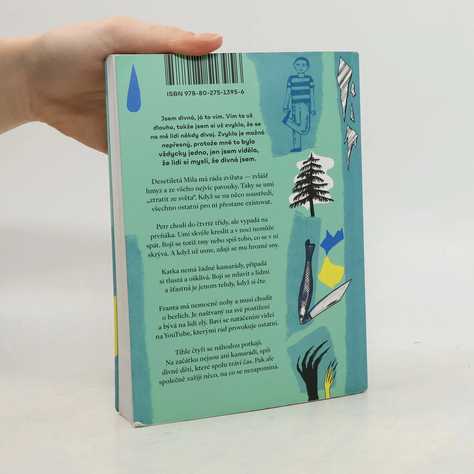 Desetiletá Mila má ráda zvířata — zvlášť hmyz a ze všeho nejvíc pavouky. Taky se umí „ztratit ze světa“. Když se na něco soustředí, všechno ostatní pro ni přestane existovat. Petr chodí do čtvrté třídy, ale vypadá na prvňáka. Umí skvěle kreslit a v noci nemůže spát. Bojí se totiž tmy nebo spíš toho, co se v ní skrývá. A když už usne, zdají se mu hrozné sny. Katka nemá žádné kamarády, připadá si tlustá a ošklivá. Bojí se mluvit s lidmi a šťastná je jenom tehdy, když si čte. Franta má nemocné nohy a musí chodit o berlích. Je naštvaný na své postižení a bývá na lidi zlý. Baví se natáčením videí na YouTube, kterými rád provokuje ostatní. Tihle čtyři se náhodou potkají. Na začátku nejsou ani přátelé, spíš divné děti, co spolu tráví čas. Pak ale společně zažijí něco, na co se nezapomíná.