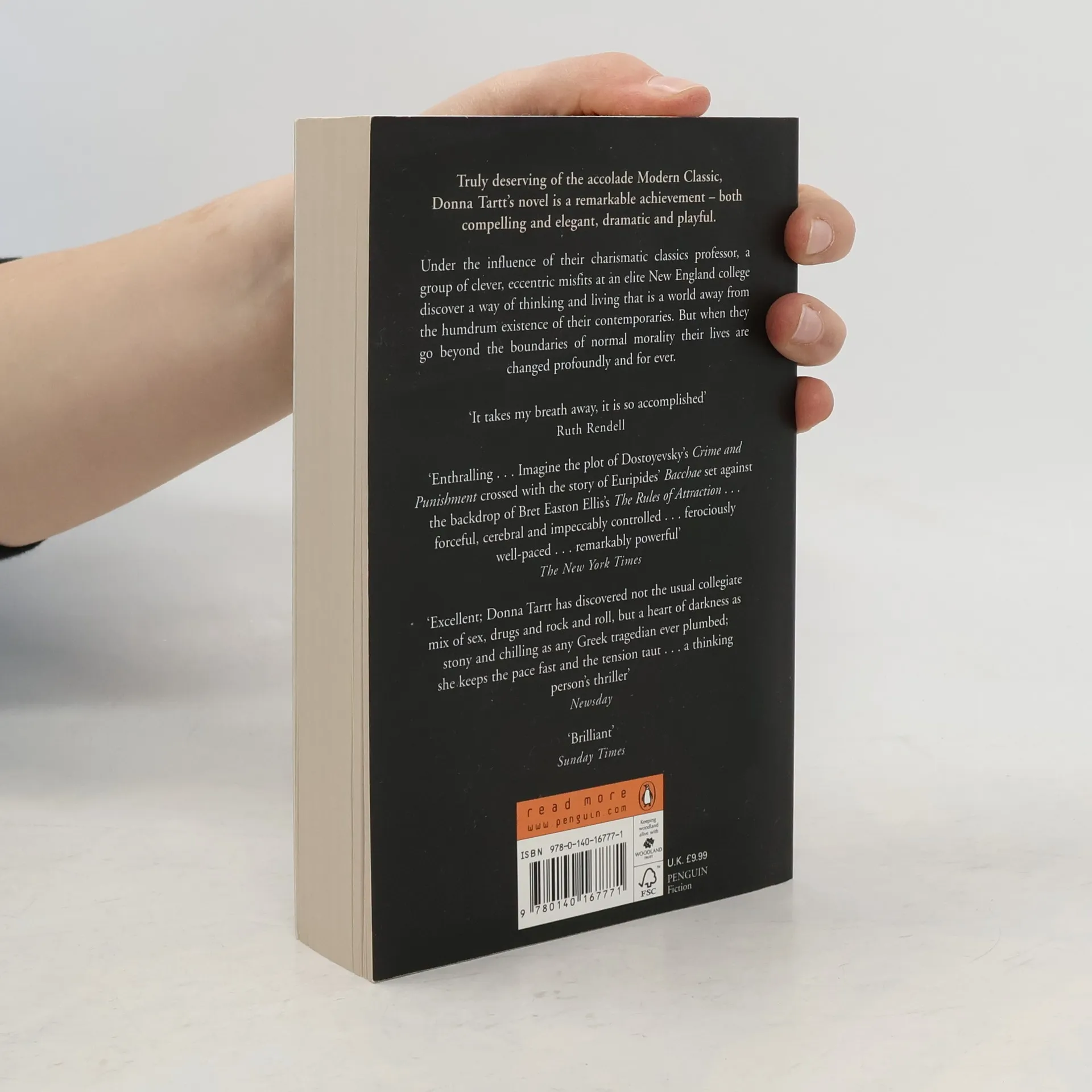 Truly deserving of the accolade Modern Classic, Donna Tartt's cult bestseller The Secret History is a remarkable achievement - both compelling and elegant, dramatic and playful.'A haunting, compelling and brilliant piece of fiction' The Times'So irresistible and seductive it's almost a guilty pleasure' GuardianUnder the influence of their charismatic classics professor, a group of clever, eccentric misfits at an elite New England college discover a way of thinking and living that is a world away from the humdrum existence of their contemporaries. But when they go beyond the boundaries of normal morality their lives are changed profoundly and for ever.'Enthralling . . . image the plot of Dostoyevsky's Crime and Punishment crossed with the story of Euripides' Bacchae set against the backdrop of Bret Easton Ellis's The Rules of Attraction . . . forceful, cerebral and impeccably controlled . . . ferociously well-paced . . . remarkably powerful' The New York Times'Donna Tartt is an amazingly good writer. She's dense, she's allusive. She's a gorgeous storyteller' Stephen KingDonna Tartt was born in Greenwood, Mississippi, and is a graduate of Bennington College. She is the author of the novels The Secret History and The Little Friend, which have been translated into thirty languages, and The Goldfinch.