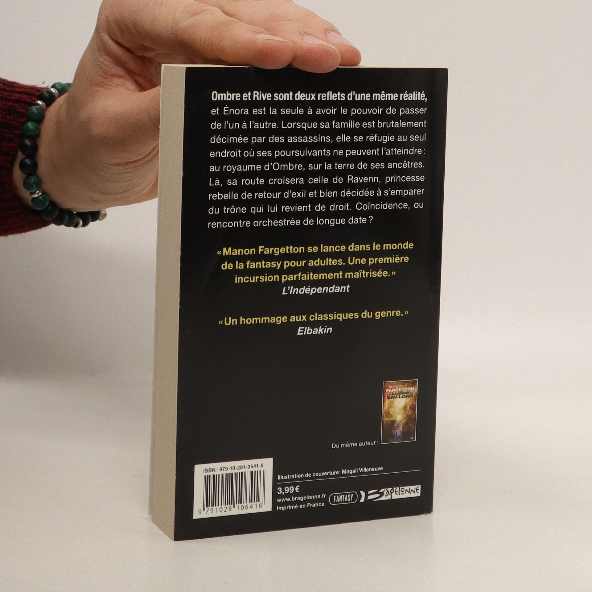 Ombre, univers peuplé de magie, et Rive, le monde tel qu’on le connaît, sont les deux reflets déformés d’une même réalité. Énora est unique : elle peut traverser d’un monde à l’autre. Lorsque sa famille est brutalement décimée par des assassins masqués, elle se réfugie au seul endroit où ses poursuivants ne peuvent l’atteindre. Au royaume d’Ombre, sur la terre de ses ancêtres. Là-bas, Ravenn, une princesse rebelle, fait son retour après neuf ans d’exil passés à chasser les dragons du grand sud. Sa mère, la reine, est mourante. Ravenn veut s’emparer de ce qui lui revient de droit : le trône d’Ombre. Et elle n’est pas la bienvenue. Deux mondes imbriqués. Deux femmes fortes, éprouvées par la vie. Deux destins liés qui bouleverseront la tortueuse histoire du royaume d’Ombre…