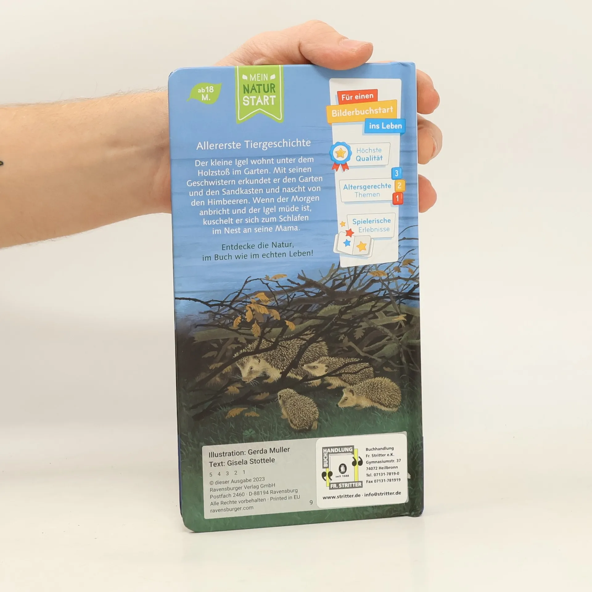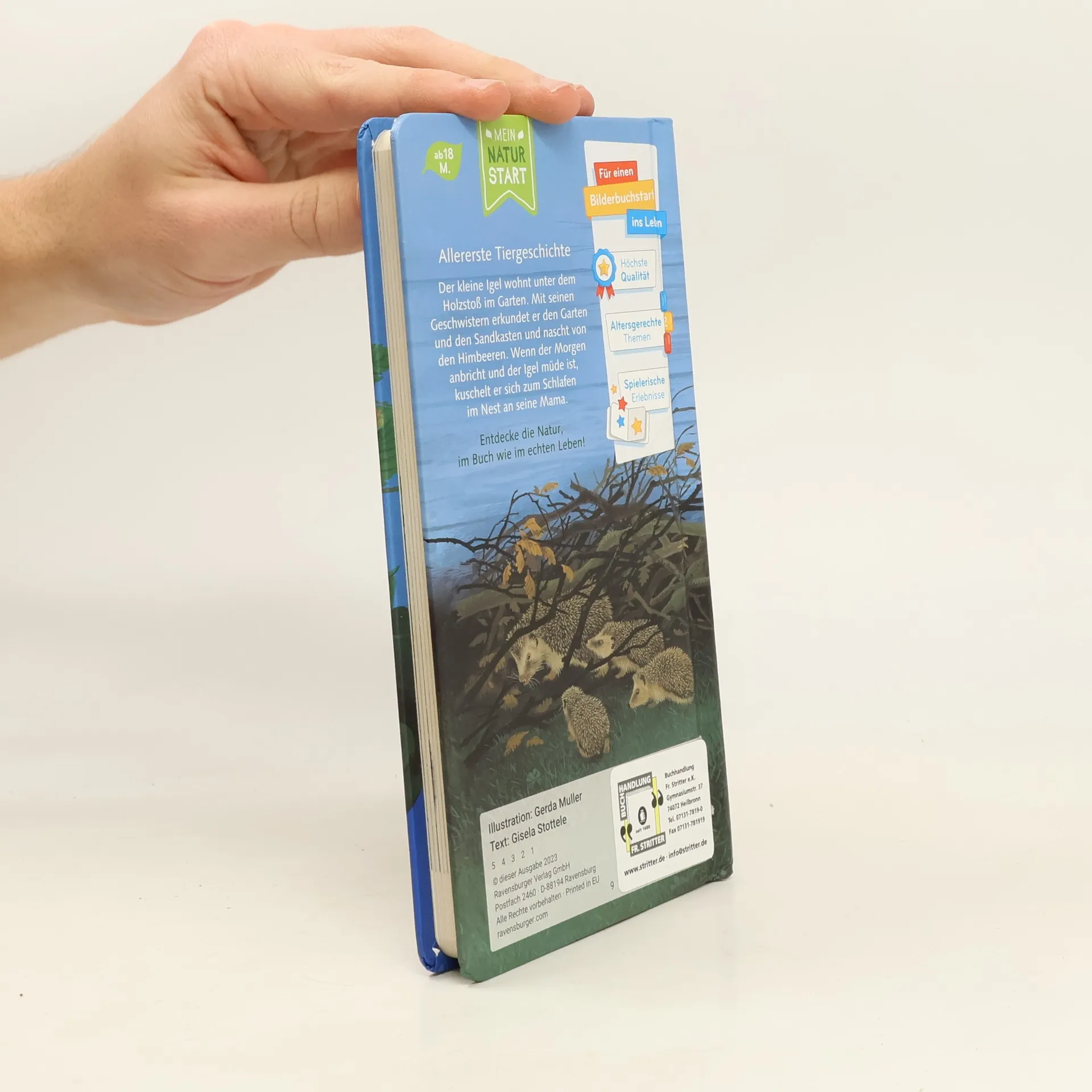 Liebevolle Vorlesegeschichte vom Igelkind Zusammen mit seinen Geschwistern wohnt der kleine Igel unter einem Holzstoß im Garten. Neugierig macht er sich alleine auf eine Entdeckungsreise und erlebt spannende Abenteuer. Gegen Abend kommt auch Mama in den Garten und fängt den kleinen Ausreißer wieder ein. Zusammen mit den Geschwistern suchen sie nach Futter. Nach einer aufregenden Nacht kuschelt er sich im Nest zu seiner Mama. Eine liebevolle Vorlesegeschichte mit einprägsamem Text für kleine Naturentdecker. Eigentlich ist der kleine Igel immer zusammen mit seiner Mama und den Geschwistern unterwegs im Garten. Aber heute ist er schon früh wach und macht auf seiner Erkundungstour ganz besondere Entdeckungen. Eine liebevolle, kleinschrittig erzählte Tiergeschichte, die schon die Kleinsten mitfühlen lässt, wie es ist, ohne Mama unterwegs zu sein. Eine erste Vorlesegeschichte, die Kinder dazu auffordert, sich mit der Hauptfigur zu identifizieren. Naturnahe Illustrationen helfen dabei, den kleinen Igel und seine Welt kennenzulernen.