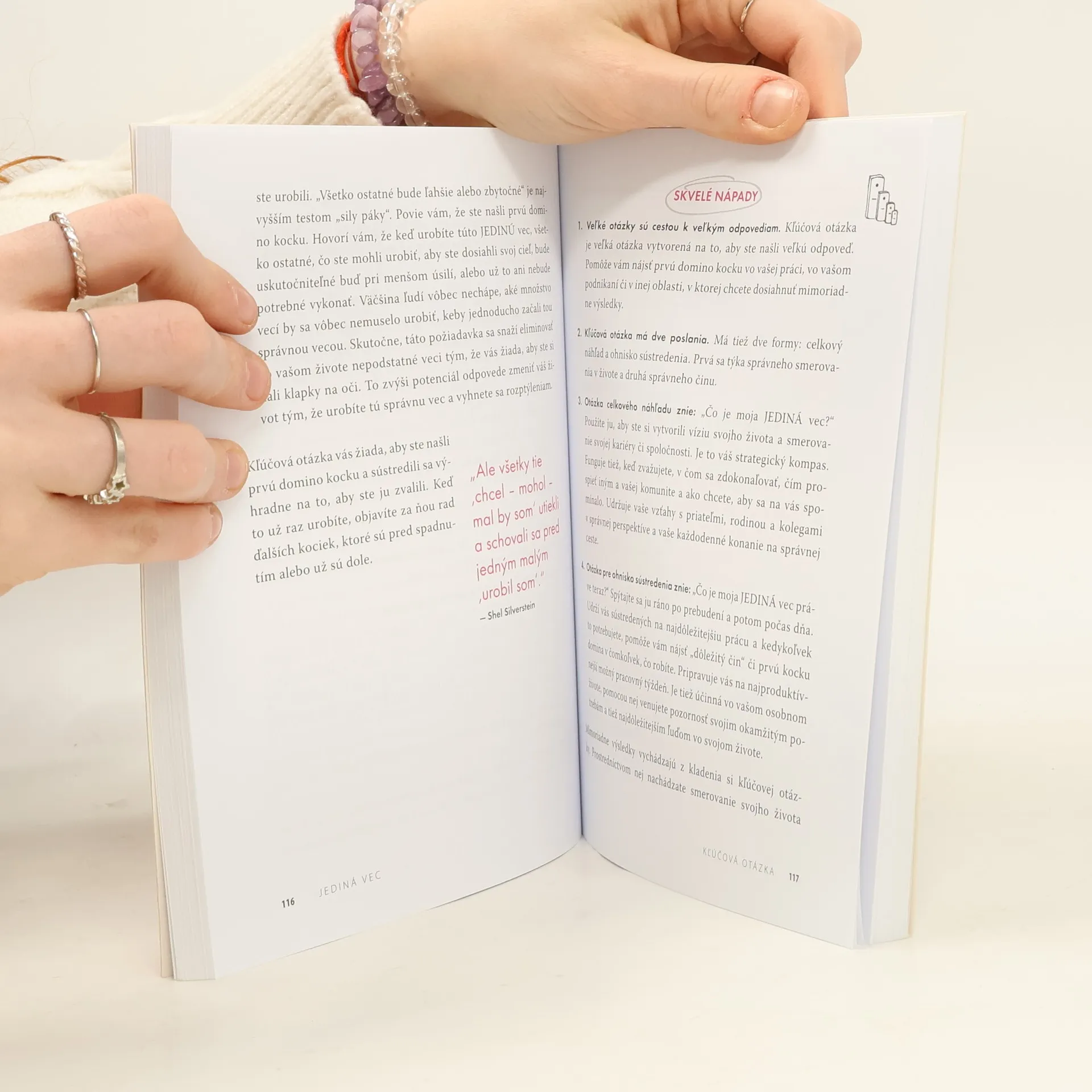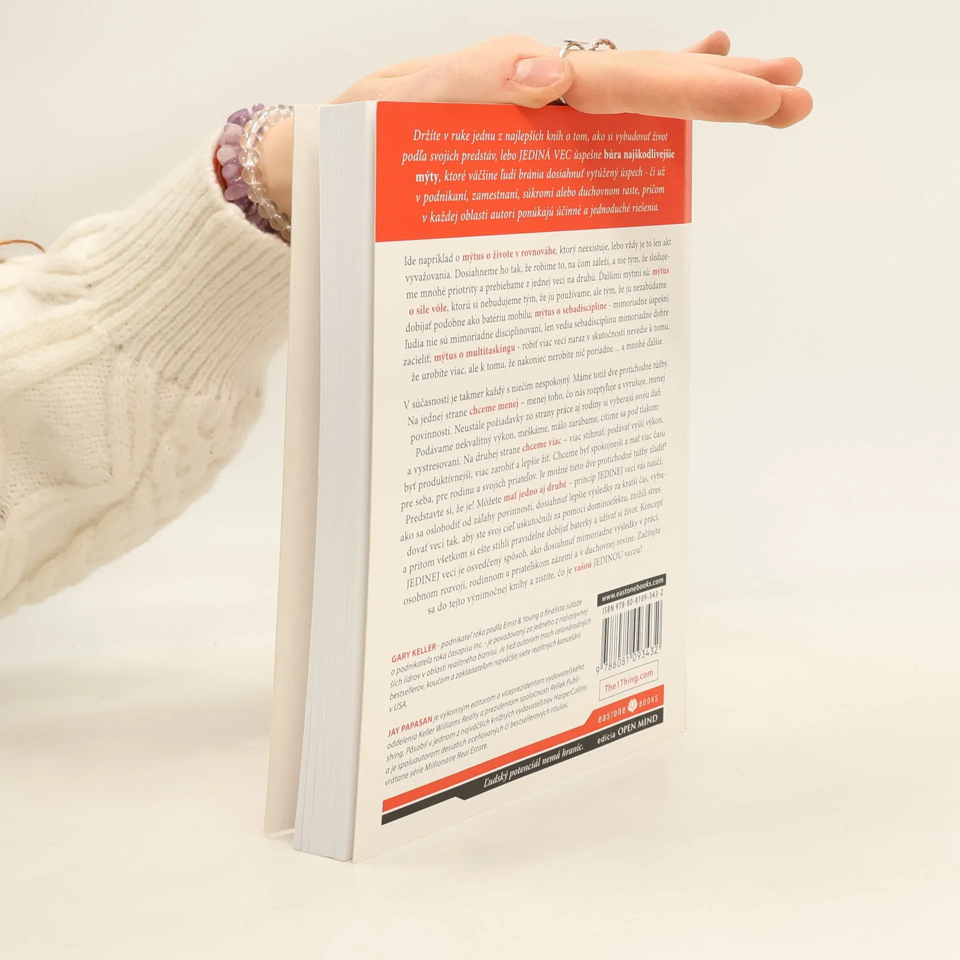 12 knižných ocenení; 350 umiestnení v rôznych rebríčkoch bestsellerov, vrátane tých najrešpektovanejších vo Wall Street Journal, NewYork Times a USA Today; 27 jazykových mutácií a publikovanie vo vyše 30 krajinách sveta; 1 z piatich najlepších biznisových kníh roka; 1 zo sto najlepších biznisových kníh všetkých čias.Držíte v ruke jednu z najlepších kníh o tom, ako si vybudovať život podľa vašich predstáv, lebo JEDINÁ VEC úspešne búra najškodlivejšie mýty, ktoré väčšine ľudí bránia dosiahnuť vytúžený úspech - či už v podnikaní, zamestnaní, súkromí alebo duchovnom raste, pričom v každej oblasti autori ponúkajú účinné a jednoduché riešenia. Koncept JEDINEJ veci je osvedčený spôsob, ako dosiahnuť mimoriadne výsledky v práci, osobnom rozvoji, rodinnom a priateľskom zázemí a v duchovnej rovine. Začítajte sa do tejto výnimočnej knihy a zistite, čo je vašou JEDINOU vecou!