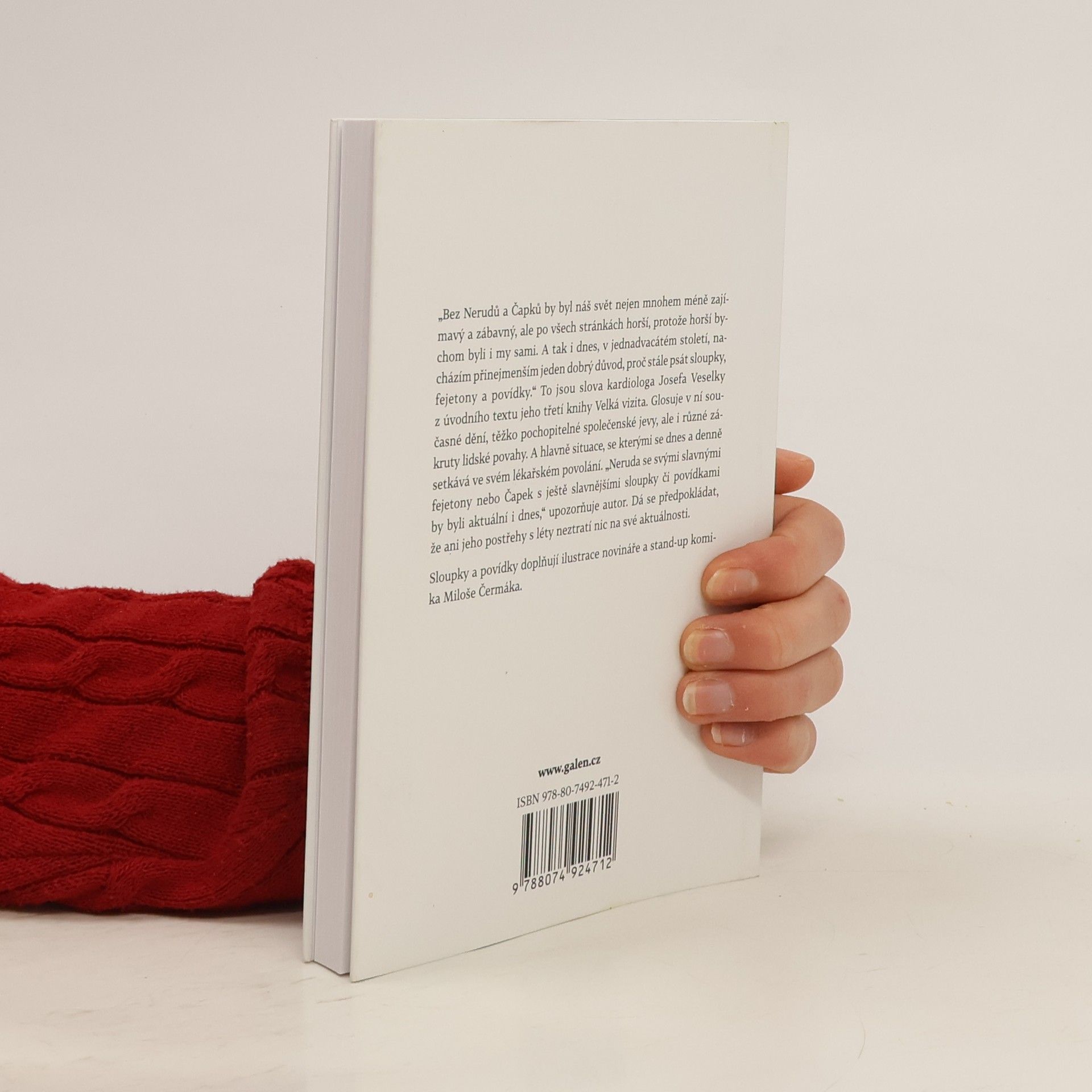 „Bez Nerudů a Čapků by byl náš svět nejen mnohem méně zajímavý a zábavný, ale po všech stránkách horší, protože horší bychom byli i my sami. A tak i dnes, v jednadvacátém století, nacházím přinejmenším jeden dobrý důvod, proč stále psát sloupky, fejetony a povídky.“ To jsou slova kardiologa Josefa Veselky z úvodního textu jeho třetí knihy Velká vizita. Glosuje v ní současné dění, těžko pochopitelné společenské jevy, ale i různé zákruty lidské povahy. A hlavně situace, se kterými se dnes a denně setkává ve svém lékařském povolání. „Neruda se svými slavnými fejetony nebo Čapek s ještě slavnějšími sloupky či povídkami by byli aktuální i dnes,“ upozorňuje autor. Dá se předpokládat, že ani jeho postřehy s léty neztratí nic na své aktuálnosti. Sloupky a povídky doplňují ilustrace novináře a stand-up komika Miloše Čermáka.