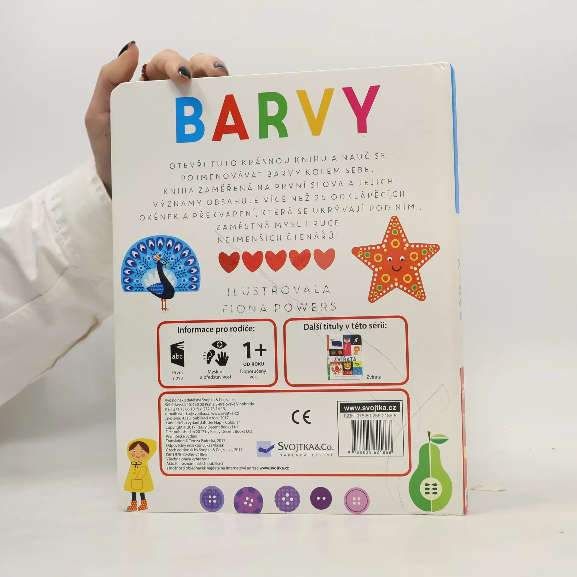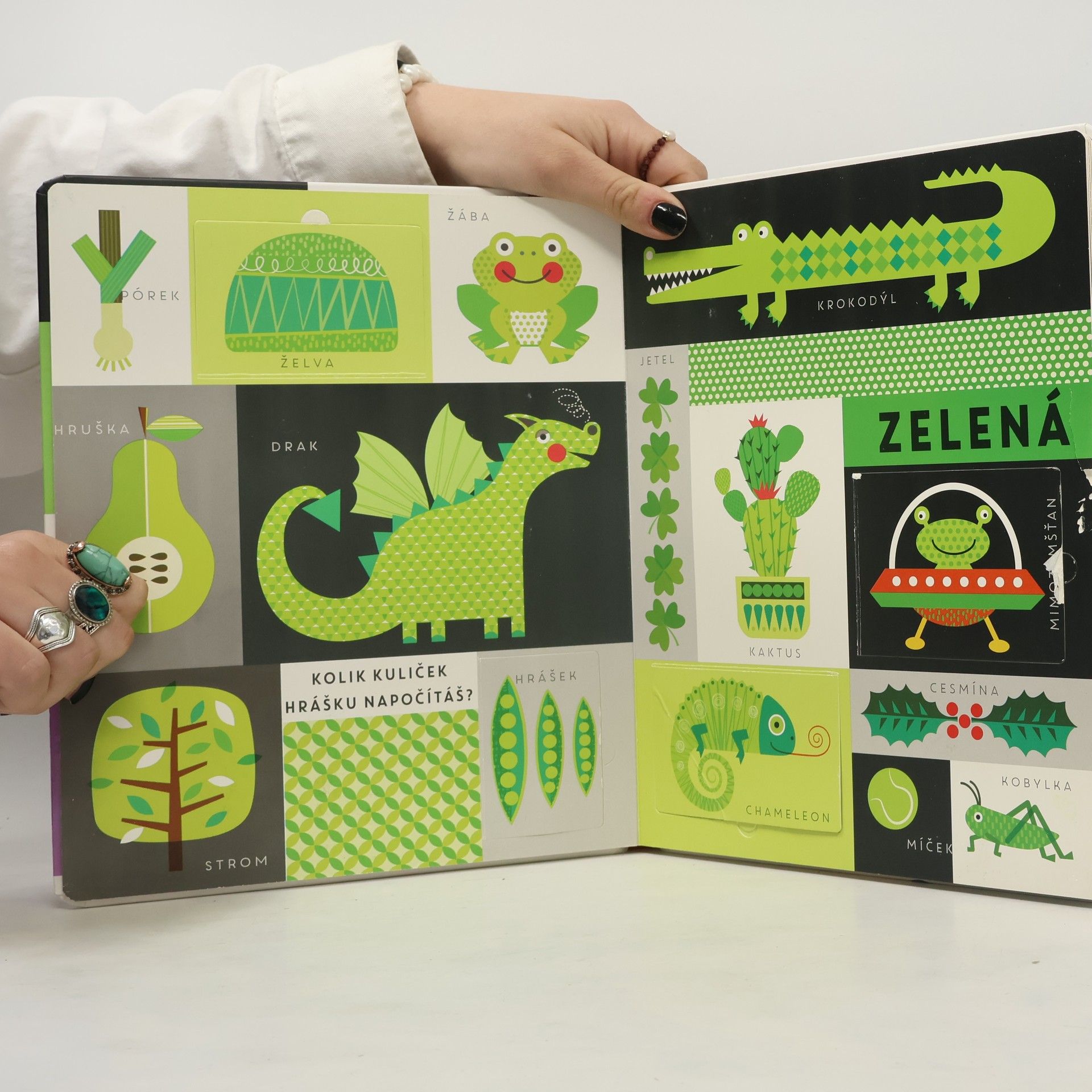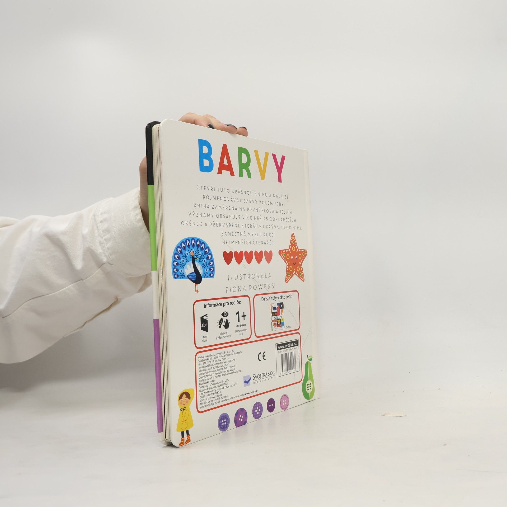Kniha zaměřená na první slova a jejich významy obsahuje více než 25 odklápěcích okének a překvapení, která se ukrývají pod nimi. Zaměstná mysl i ruce nejmenších čtenářů. Rozšiřuje slovní zásobu dětí. Rozvíjí myšlení a představivost. Dvojstrany věnované jednotlivým barvám se je snaží dětem představit pomocí nejrůznějších věcí či zvířat. Každou barvu doplňuje otázka nebo úkol, díky čemuž se budou děti rozvíjet hravou formou.