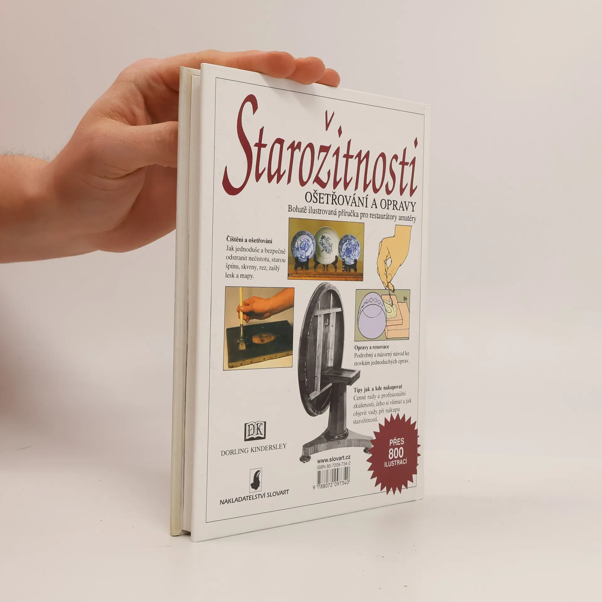 Bohatě ilustrovaná příručka pro restaurátory amatéry aneb Jak udržovat, renovovat a opravovat všechno cenné a hodnotné ve vaší domácnosti. Čištění a ošetření - jak jednoduše a bezpečně odstranit nečistotu, starou špínu, skvrny, rez, zašlý lesk a mapy. Opravy a renovace - podrobný a názorný návod ke stovkám jednoduchých oprav. Tipy jak a kde nakupovat - cenné rady a profesionální zkušenosti, čeho si všímat a jak objevit vady při nákupu starožitností.