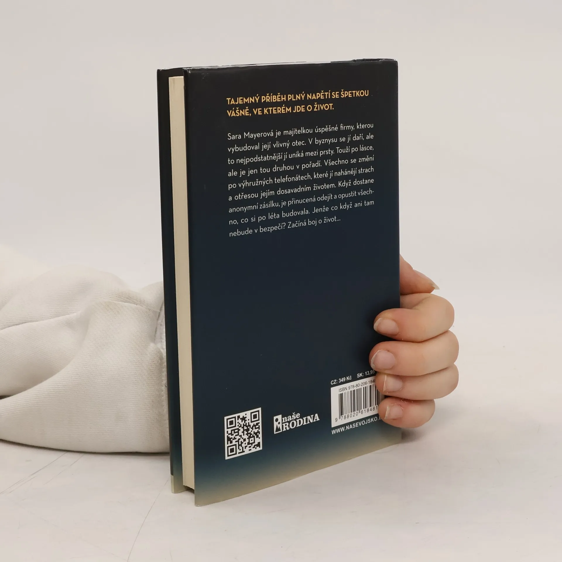 TAJEMNÝ PŘÍBĚH PLNÝ NAPĚTÍ SE ŠPETKOU VÁŠNĚ, VE KTERÉM JDE O ŽIVOT. Sara Mayerová je majitelkou úspěšné firmy, kterou vybudoval její vlivný otec. V byznysu se jí daří, ale to nejpodstatnější jí uniká mezi prsty. Touží po lásce, ale je jen tou druhou v pořadí. Všechno se změní po výhružných telefonátech, které jí nahánějí strach a otřesou jejím dosavadním životem. Když dostane anonymní zásilku, je přinucená odejít a opustit všechno, co si po léta budovala. Jenže co když ani tam nebude v bezpečí? Začíná boj o život…