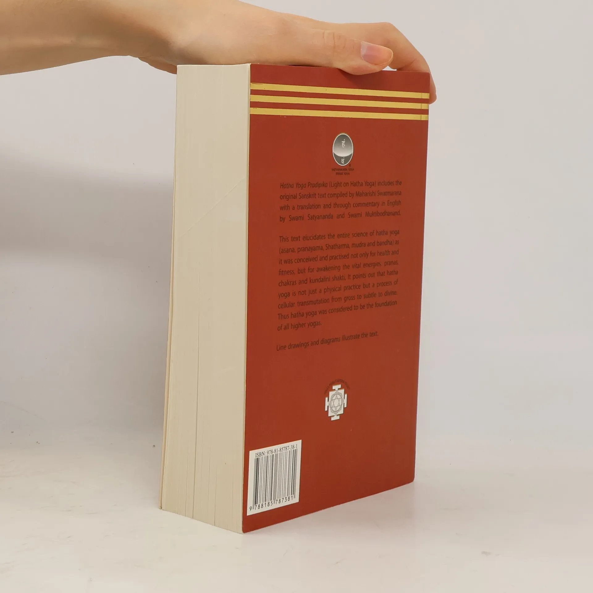 Hatha Yoga Pradipika (Light on Hatha Yoga) includes the original Sanskrit text compiled by Maharshi Swatmarama with a translation and thorough commentary in English by Swami Satyananda and Swami Muktibodhananda. This text elucidates the entire science of hatha yoga (asana, pranayama, shatkarma, mudra and bandha) as it was conceived and practised not only for health and fitness but for awakening the vital energies: pranas, chakras and kundalini shakti.It points out that hatha yoga is not just a physical practice but a process of cellular transmutation from gross to subtle to divine. Thus hatha yoga was considered to be the foundation of all higher yogas. Line drawings and diagrams illustrate the text.