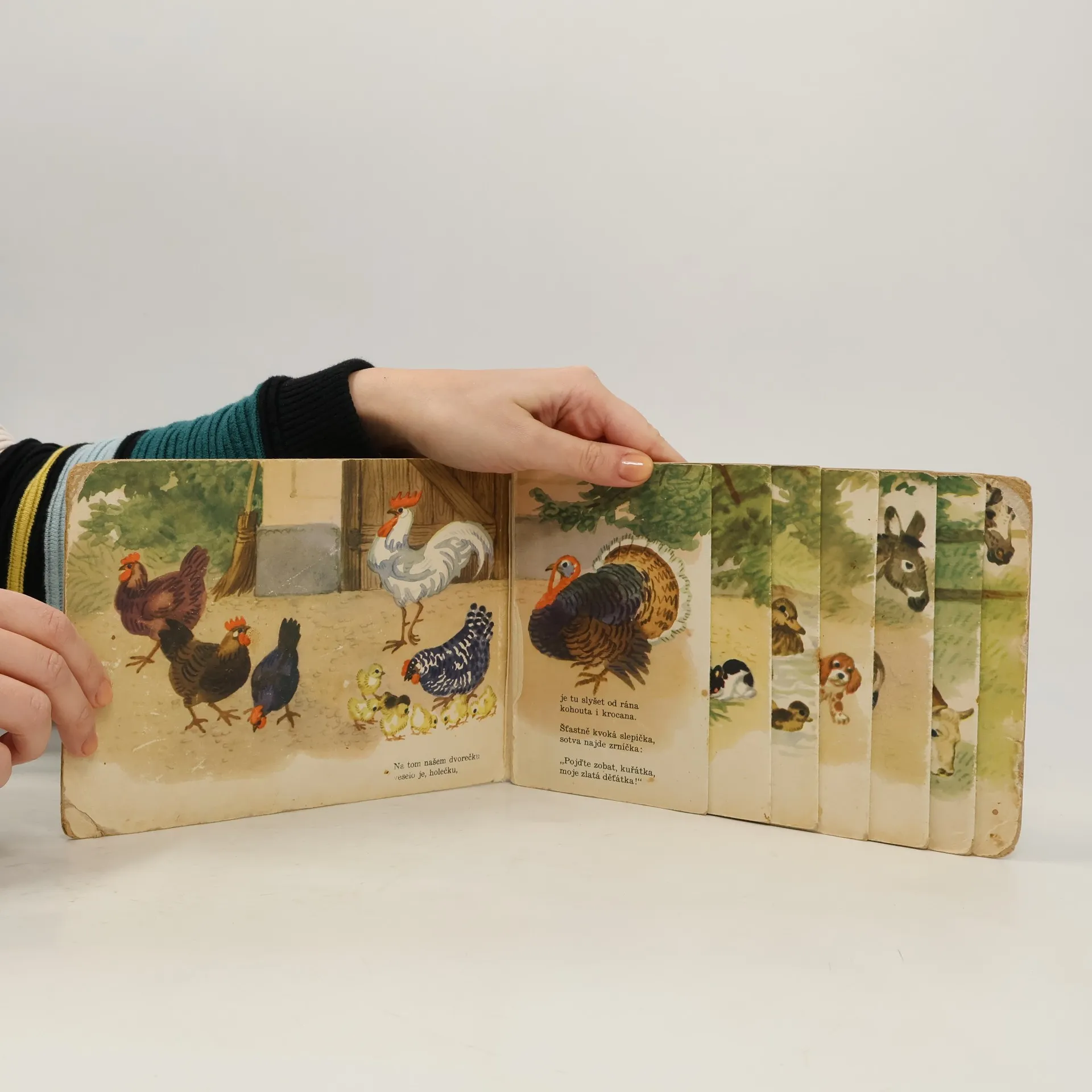 Sestupně vrstvené leporelo s kouzelnými ilustracemi Antonína Pospíšila a s krátkými básničkami o domácích zvířatech.
