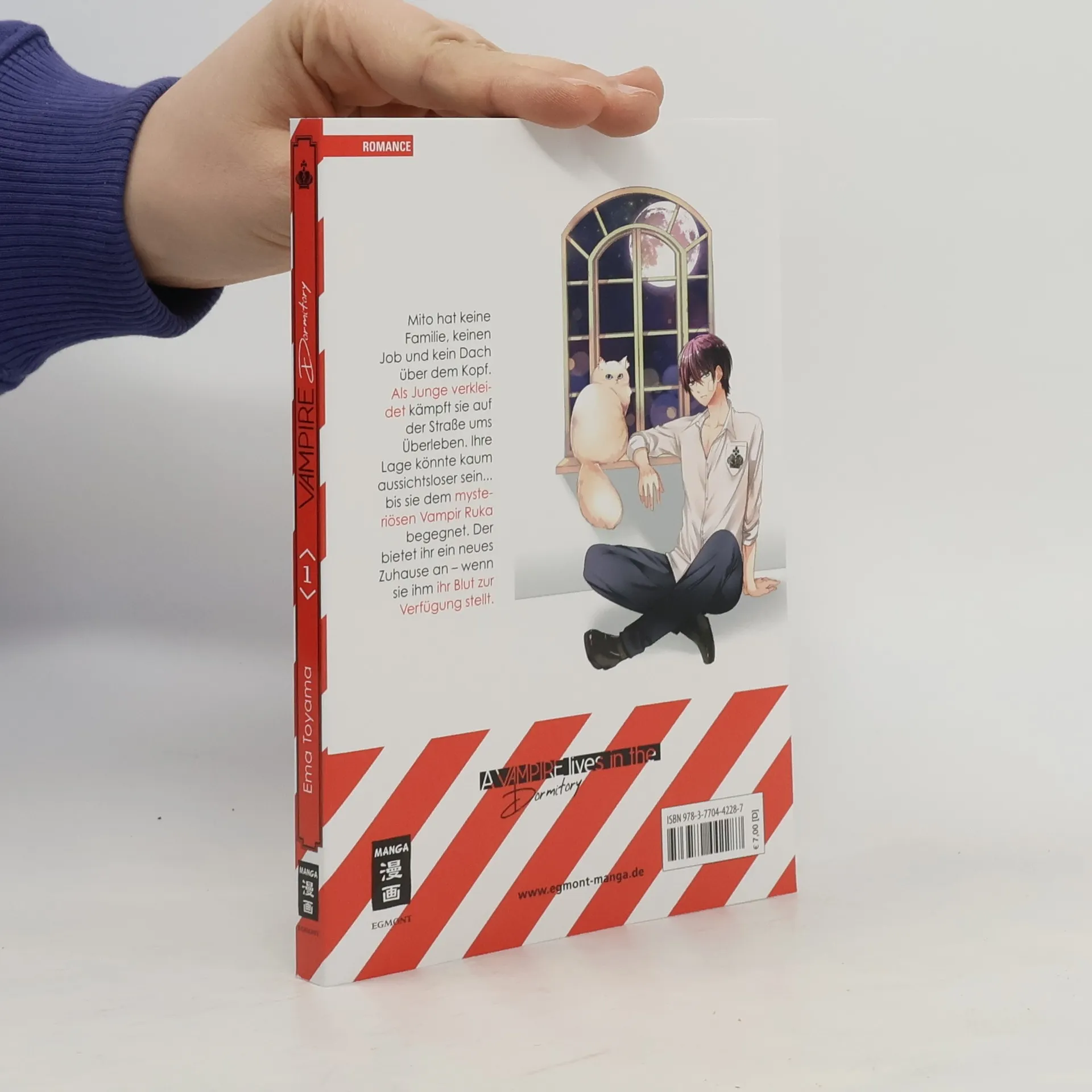 Mito hat keine Familie, keinen Job und kein Dach über dem Kopf. Als Junge verkleidet kämpft sie auf der Straße ums Überleben. Ihre Lage könnte kaum aussichtsloser sein... bis sie dem mysteriösen Vampir Ruka begegnet. Der bietet ihr ein neues Zuhause an – wenn sie ihm ihr Blut zur Verfügung stellt. Fantastischer Romance-Nachschub von Ema Toyama!