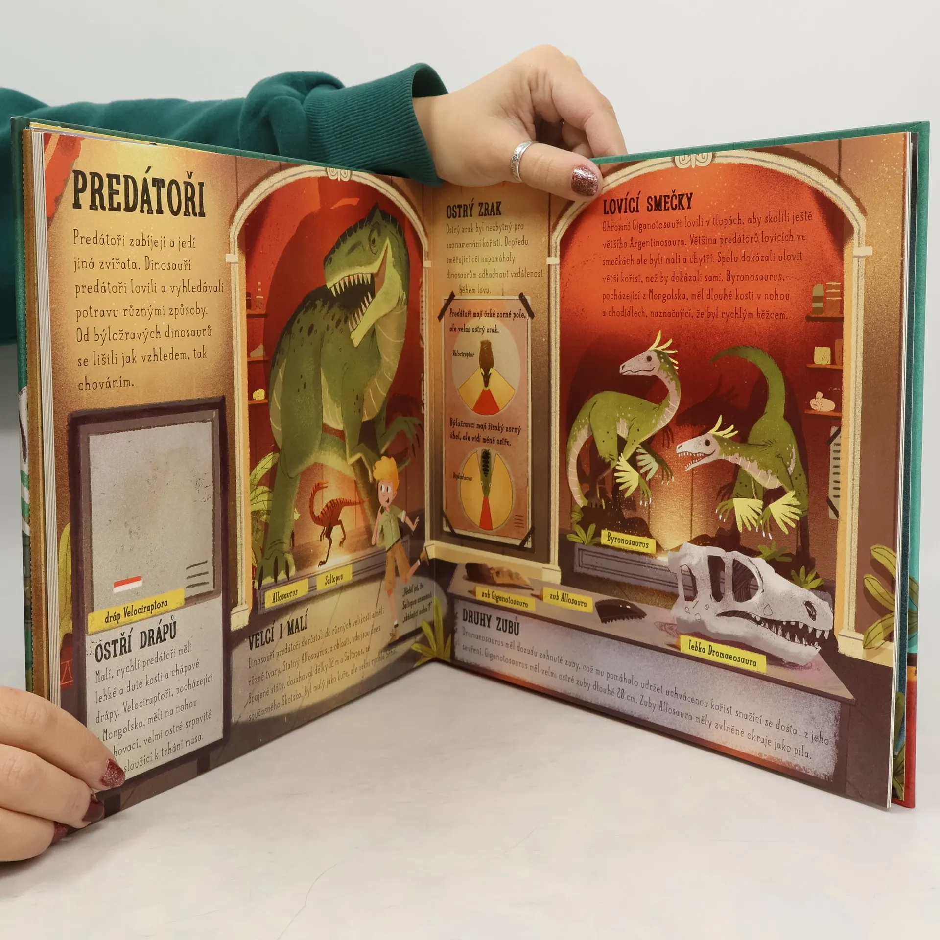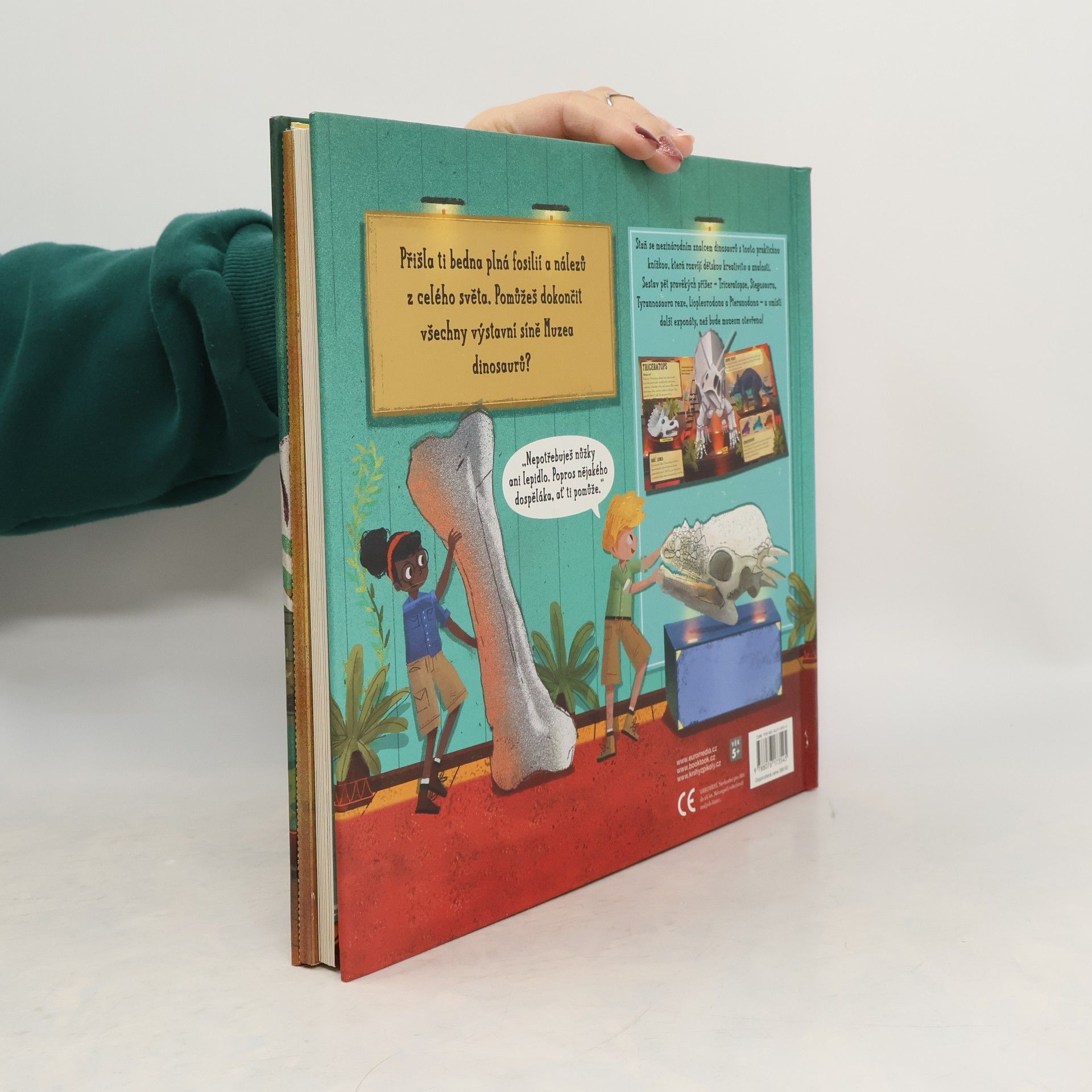 Přišla ti bedna plná úchvatných zkamenělin a nálezů do muzea. Rozbal ji a vyndej vše, co budeš potřebovat pro dokončení exponátů. Každá pravěká skládací kostra je doplněna jednoduchými instrukcemi. Tak najdi tu správnou místnost na plánku muzea a pusť se do toho! Na závěr ještě umísti doplňkové exponáty a muzeum může otevírat. Kromě zkamenělin a nálezů do muzea kniha obsahuje základní historii dinosaurů, popis jejich základních druhů a rozdělení.