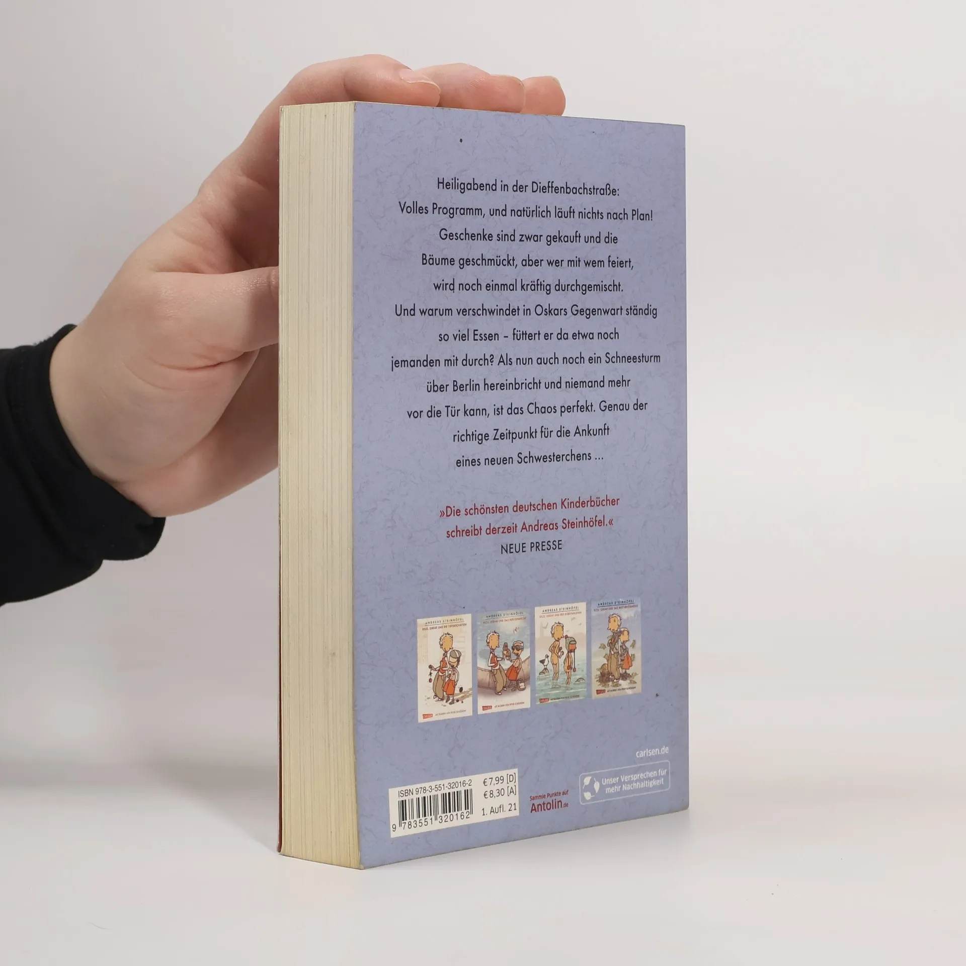 Geschenke sind zwar gekauft und die Bäume geschmückt, aber wer mit wem feiert, wird noch einmal kräftig durchgemischt. Und warum verschwindet in Oskars Gegenwart ständig so viel Essen – füttert er da etwa noch jemanden mit durch? Als nun auch noch ein Schneesturm über Berlin hereinbricht und niemand mehr vor die Tür kann, ist das Chaos perfekt. Genau der richtige Zeitpunkt für die Ankunft eines neuen Schwesterchens ... »Der beste Rico, Oskar-Roman von allen!« Der Tagesspiegel »Voller Witz und Wendungen und Skurrilitäten« Stuttgarter Zeitung »Die lustigsten, weisesten, herzwärmsten Bücher übers Kindsein in Berlin finden hiermit eine geniale Fortsetzung.« Berliner Zeitung