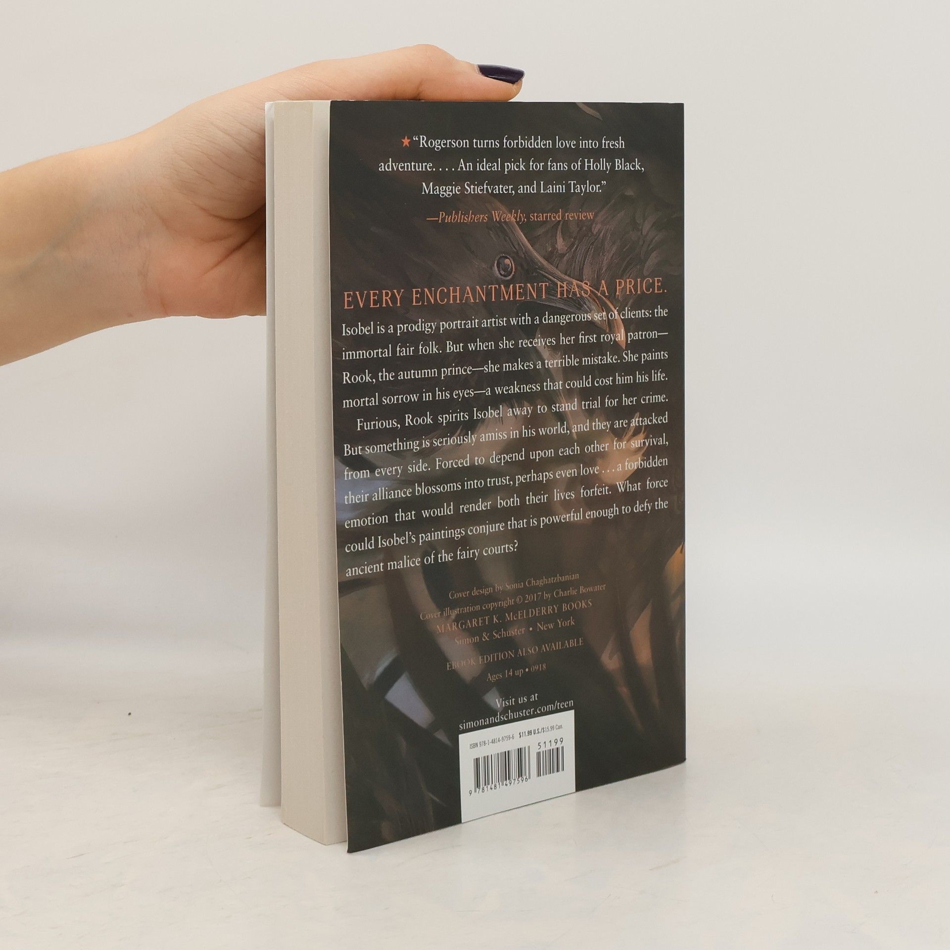 Isobel is a prodigy portrait artist with a dangerous set of clients: the sinister fair folk, immortal creatures who cannot bake bread, weave cloth, or put a pen to paper without crumbling to dust. They crave human Craft with a terrible thirst, and Isobel's paintings are highly prized. But when she receives her first royal patron--Rook, the autumn prince--she makes a terrible mistake. She paints mortal sorrow in his eyes--a weakness that could cost him his life. Furious and devastated, Rook spirits her away to the autumnlands to stand trial for her crime. Waylaid by the Wild Hunt's ghostly hounds, the tainted influence of the Alder King, and hideous monsters risen from barrow mounds, Isobel and Rook depend on one another for survival. Their alliance blossoms into trust, then love--and that love violates the fair folks' ruthless laws. Now both of their lives are forfeit, unless Isobel can use her skill as an artist to fight the fairy courts. Because secretly, her Craft represents a threat the fair folk have never faced in all the millennia of their unchanging lives: for the first time, her portraits have the power to make them feel