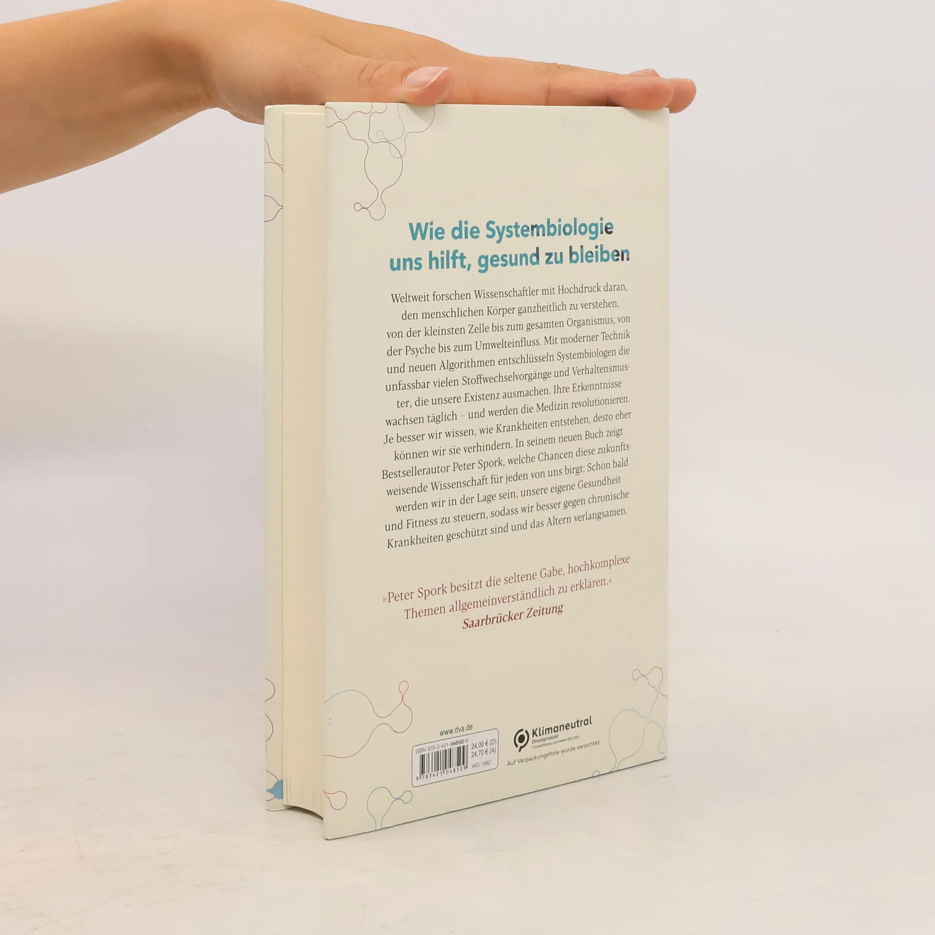 Das Ende aller Krankheiten? Wie die neue Wissenschaft der Systembiologie uns hilft, gesund zu bleiben Weltweit forschen Wissenschaftler mit Hochdruck daran, den menschlichen Körper ganzheitlich zu verstehen, von der kleinsten Zelle bis zum gesamten Organismus, von der Psyche bis zum Umwelteinfluss. Mit moderner Technik und neuen Algorithmen entschlüsseln Systembiologen die unfassbar vielen Stoffwechselvorgänge und Verhaltensmuster, die unsere Existenz ausmachen. Ihre Erkenntnisse wachsen täglich – und werden die Medizin revolutionieren. Je besser wir wissen, wie Krankheiten entstehen, desto eher können wir sie verhindern. In seinem neuen Buch zeigt Bestsellerautor Peter Spork, welche Chancen diese zukunftsweisende Wissenschaft für jeden von uns birgt: Schon bald werden wir in der Lage sein, unsere eigene Gesundheit und Fitness zu steuern, sodass wir besser gegen chronische Krankheiten geschützt sind und das Altern verlangsamen.