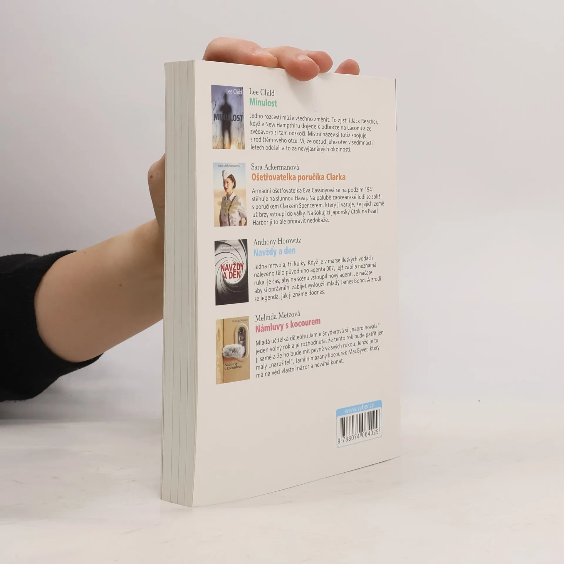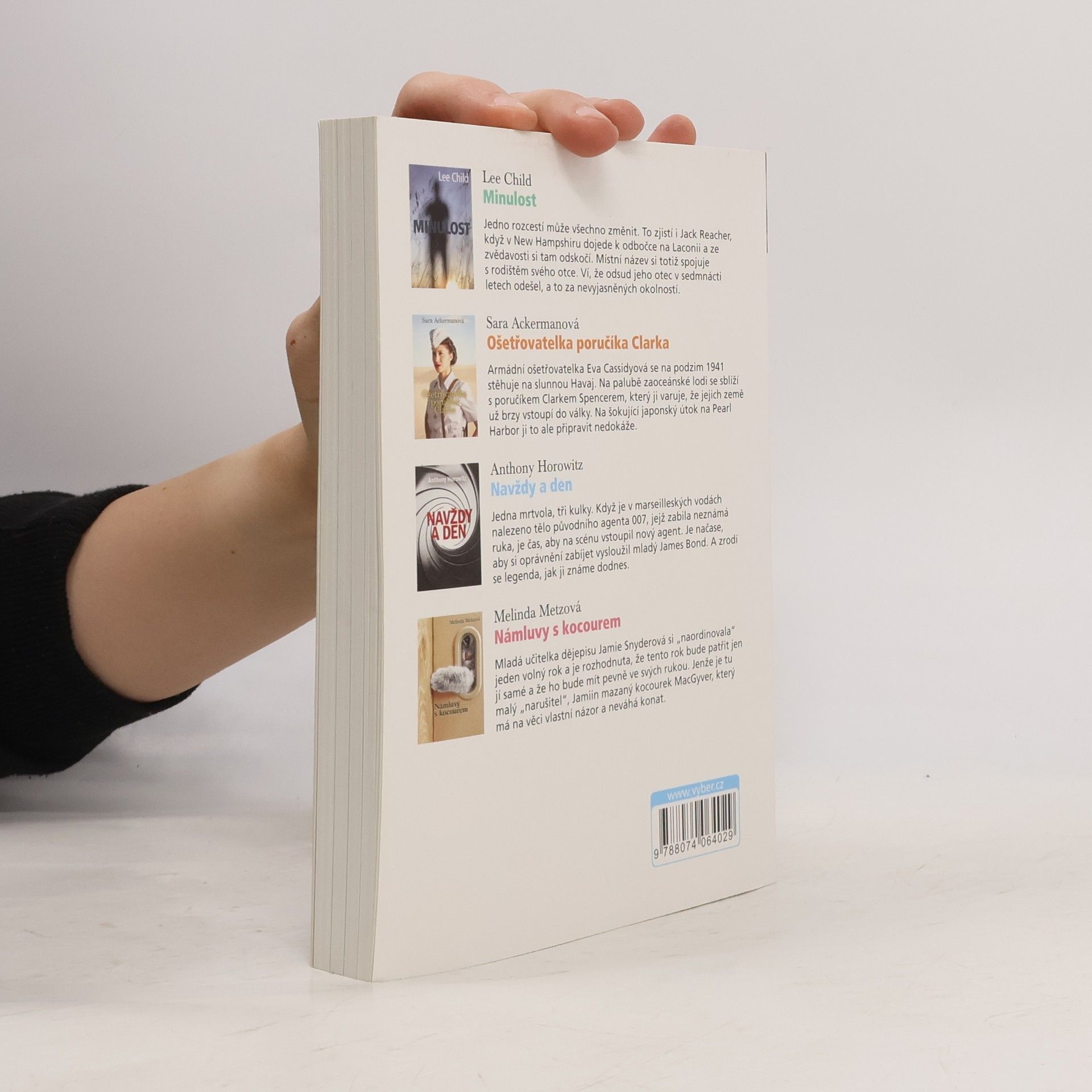 Minulost: Další thriller s hrdinou Jackem Reacherem, tentokrát pátrá po minulosti svého otce. Ošetřovatelka poručíka Clarka : Armádní ošetřovatelka Eva Cassidyová se ocitá na Havaji těsně před útokem na Pearl Harbor. Navždy a den : Zabili agenta 007! Ať žije nový agent 007! Námluvy s kocourem : Jak kocour MacGyver pomáhal své paničce ke štěstí...
