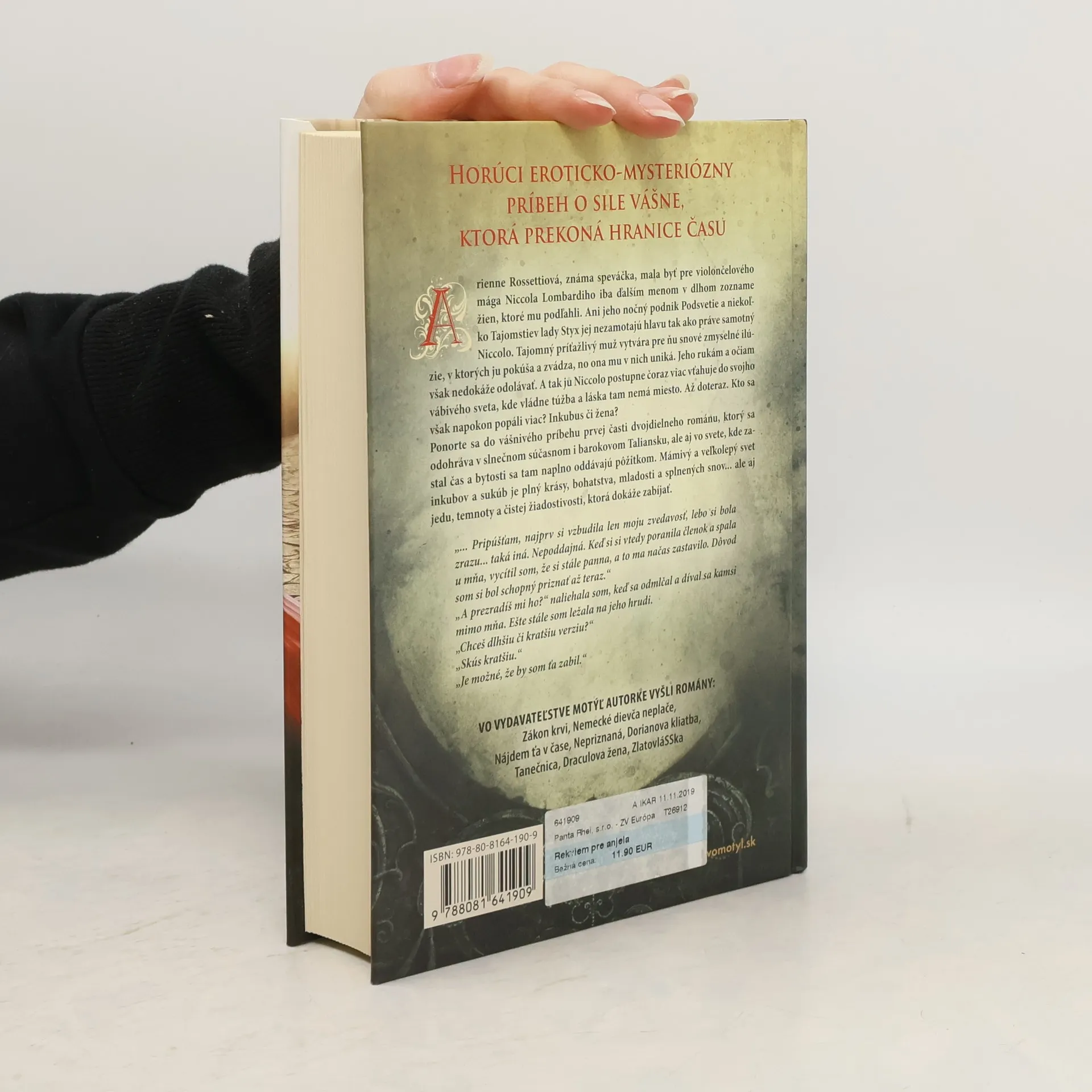 Horúci eroticko-mysteriózny príbeh o vášnivej láske, ktorá prekonáva čas. Arienne Rossettiová, známa speváčka, sa stáva objektom záujmu violončelového mága Niccola Lombardiho, ktorý ju zaujme viac, než by si kedy predstavovala. Jeho nočný podnik Podsvetie a tajomstvá lady Styx ju síce fascinujú, ale skutočná príťažlivosť prichádza od samotného Niccola. Tento tajomný a príťažlivý muž ju vťahuje do sveta plného zmyselných ilúzií, v ktorých ju pokúša a zvádza, no ona mu uniká. Napriek tomu, jeho pohľady a dotyky sú pre ňu neodolateľné. Niccolo ju postupne zasahuje do svojho vábivého, ale nebezpečného sveta, kde túžba prevláda nad láskou. Kto sa napokon spáli viac – inkubus alebo ľudská žena? Vstúpte do vášnivého príbehu, ktorý sa odohráva v súčasnom a barokovom Taliansku, ale aj v čase, kde sa bytosti oddávajú pôžitkom. Mámivý svet inkubov a sukub je plný krásy, bohatstva a splnených snov, no aj temnoty a žiadostivosti, ktorá môže zabíjať. „Pripúšťam, najprv si vzbudila len moju zvedavosť... Dôvod som si bol schopný priznať až teraz.“ „A prezradíš mi ho?“ „Chceš dlhšiu či kratšiu verziu?“ „Skús kratšiu.“ „Je možné, že by som ťa zabil.“
