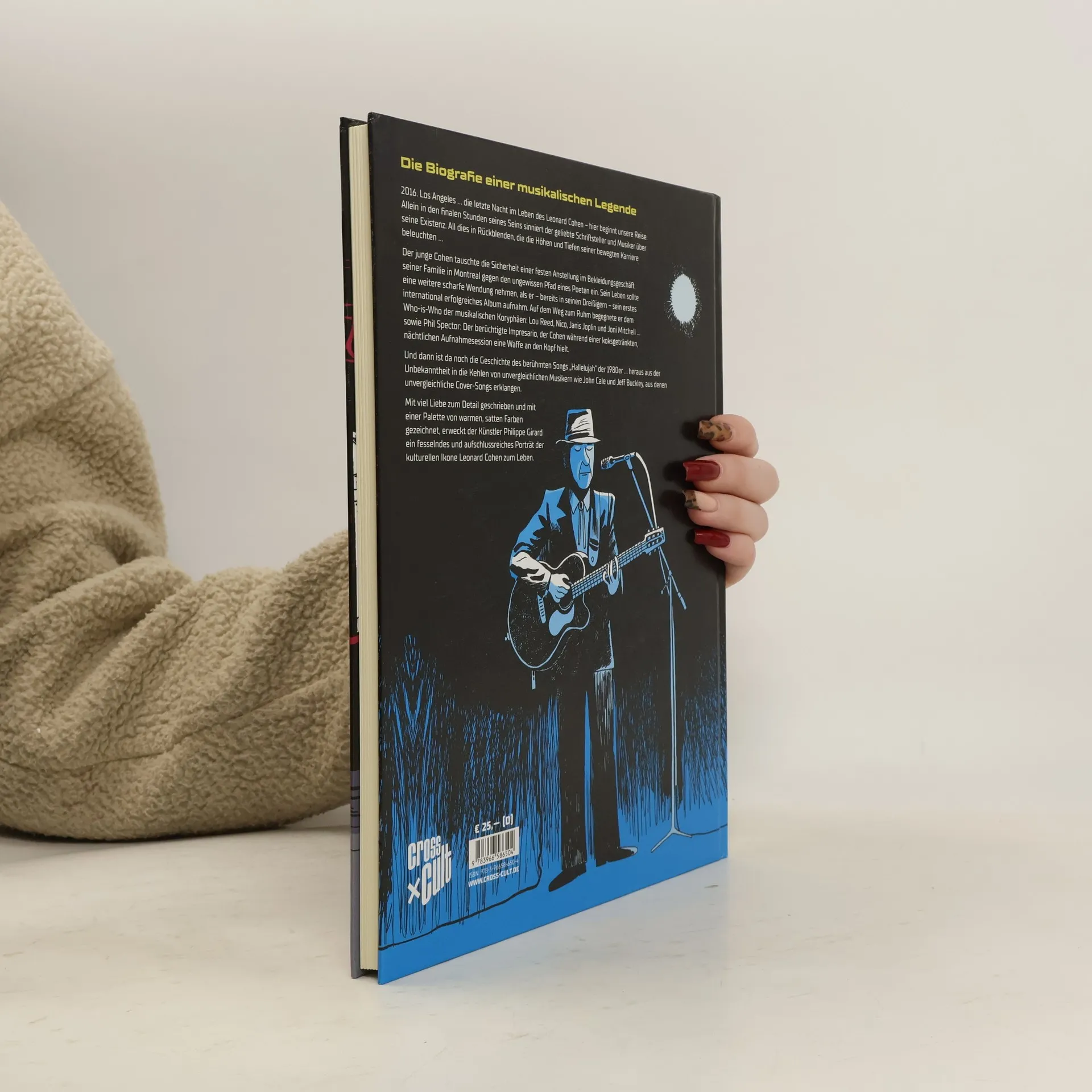 Die Biografie einer musikalischen Legende 2016. Los Angeles … die letzte Nacht im Leben des Leonard Cohen – hier beginnt unsere Reise. Allein in den finalen Stunden seines Seins sinniert der geliebte Schriftsteller und Musiker über seine Existenz. All dies in Rückblenden, die die Höhen und Tiefen seiner bewegten Karriere beleuchten … Der junge Cohen tauschte die Sicherheit einer festen Anstellung im Bekleidungsgeschäft seiner Familie in Montreal gegen den ungewissen Pfad eines Poeten ein. Sein Leben sollte eine weitere scharfe Wendung nehmen, als er – bereits in seinen Dreißigern – sein erstes international erfolgreiches Album aufnahm. Auf dem Weg zum Ruhm begegnete er dem Who-is-Who der musikalischen Koryphäen: Lou Reed, Nico, Janis Joplin und Joni Mitchell … sowie Phil Spector: Der berüchtigte Impresario, der Cohen während einer koksgetränkten, nächtlichen Aufnahmesession eine Waffe an den Kopf hielt. Und dann ist da noch die Geschichte des berühmten Songs "Hallelujah" der 1980er … heraus aus der Unbekanntheit in die Kehlen von unvergleichlichen Musikern wie John Cale und Jeff Buckley, aus denen unvergleichliche Cover-Songs erklangen. Mit viel Liebe zum Detail geschrieben und mit einer Palette von warmen, satten Farben gezeichnet, erweckt der Künstler Philippe Girard ein fesselndes und aufschlussreiches Porträt der kulturellen Ikone Leonard Cohen zum Leben.