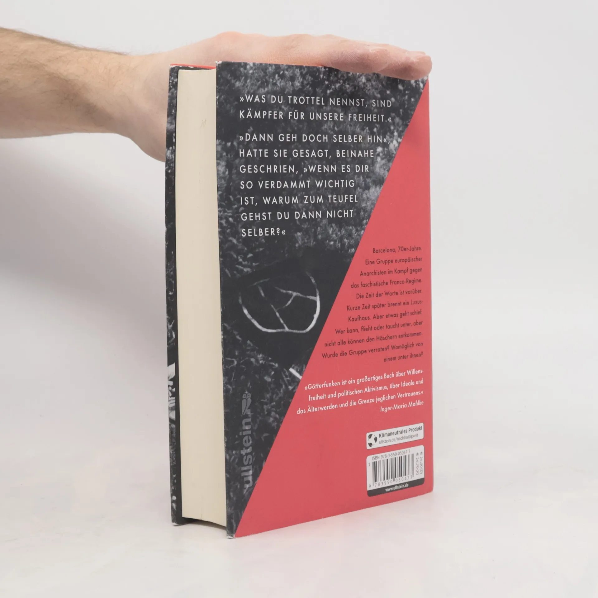 Ein vielschichtiger Roman über politische Ideale und Freundschaft, Verrat und Treue – gegenüber anderen, aber auch gegenüber sich selbst. Sie nennen sich der Spanier, der Franzose und der Alemán. Toni, Germain und Jürgen treffen sich Mitte der 70er Jahre in Barcelona, entschlossen, Widerstand gegen das faschistische Franco-Regime zu leisten. Sie planen eine Aktion, der Anschlag gelingt. Doch jemand muss sie verraten haben. Germain kann fliehen, Toni wird festgenommen und verurteilt. Und Jürgen? Viele Jahre später meint Toni den Deutschen auf der Hochzeit seiner Tochter gesehen zu haben. Er will endlich wissen, was damals geschehen ist, und kontaktiert Germain. Der wiegelt ab, um den aufgebrachten Toni zu beruhigen. Doch dann steht Germain selbst eines Abends unvermittelt vor Jürgens Tür. Kunstvoll verwebt Hannes Köhler in Götterfunken die Biographien seiner Protagonisten zu einem europäischen Tableau des linken Widerstands in den 1970er Jahren und folgt ihnen bis in unsere Gegenwart.