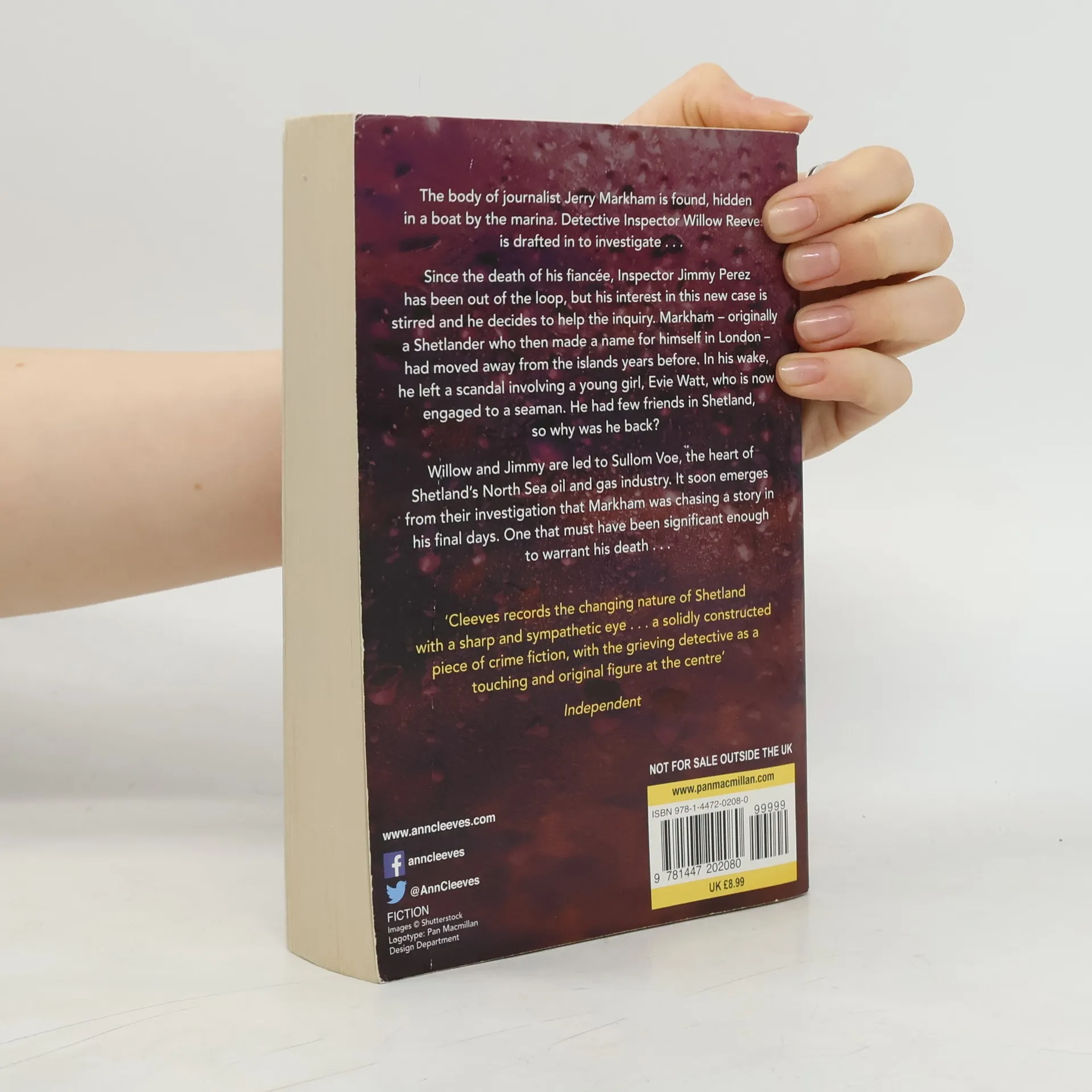 When the body of journalist Jerry Markham is found in a traditional Shetland boat, outside the house of the Fiscal down at the Marina, young Detective Inspector Willow Reeves is drafted in from the Hebrides to head up the investigation.